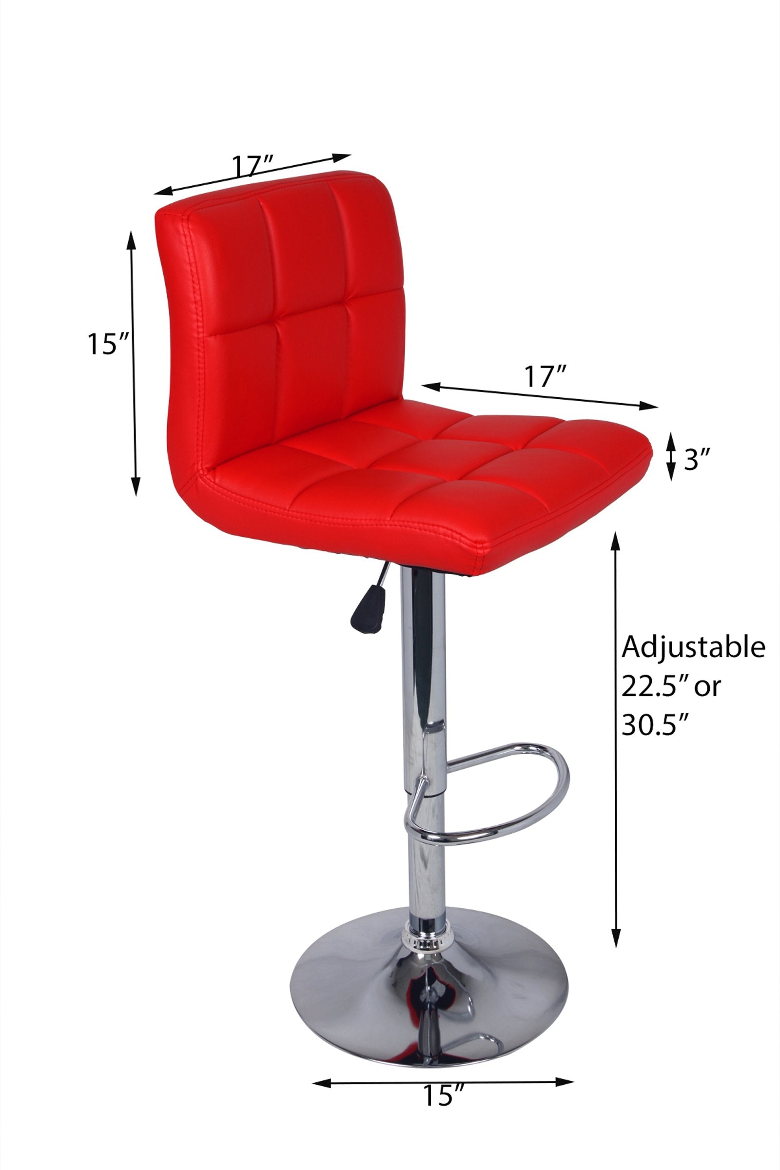 - Dimensions: Backrest- 15"H x 17"W, Seat- 17" x 17", Adjustable Height from 22 1/2" - 30 1/2"
