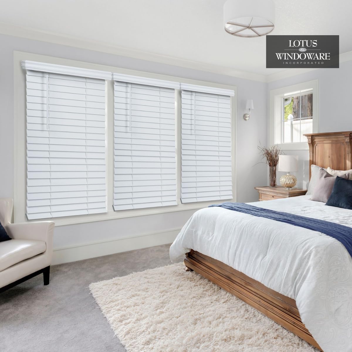 - COLOR MATCH & DESIGN: This FAUX WOOD blind for indoor windows is Bright White in color offering a modern and inviting look for your home. With For best trim match please refer to the item description and product photos. This blind offers 2-1/2 Inch Smooth Faux Wood Slats with a steel metal headrail making it a perfect choice for your home for years to come.