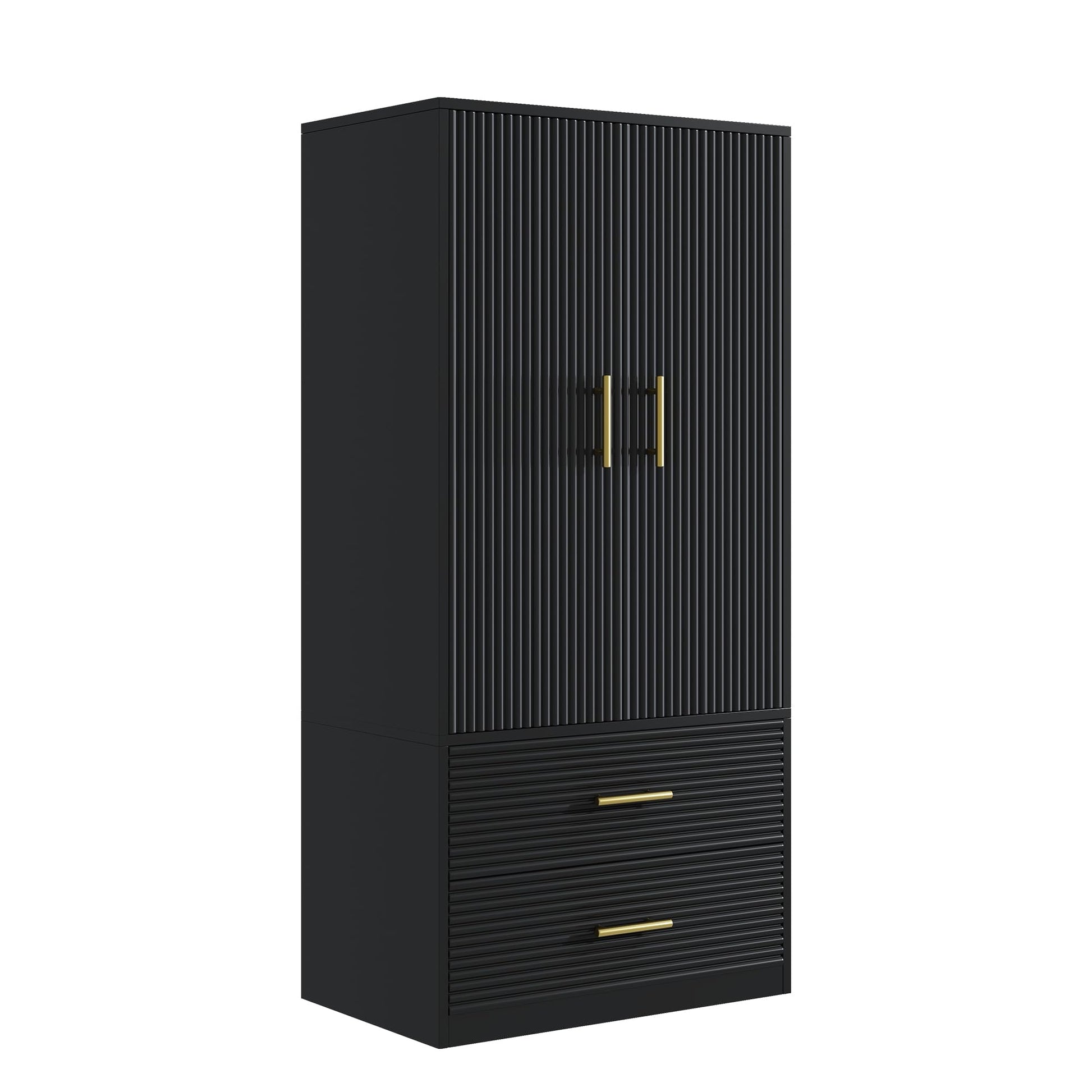- The wardrobe is classic and simple wooden closet cabinet, it consist of elegant Wave wood cabinet panel, exquisite gold handle and minimalist wood base, Our armoire storage cabinet boasts timeless elegance to complement any interior decor.