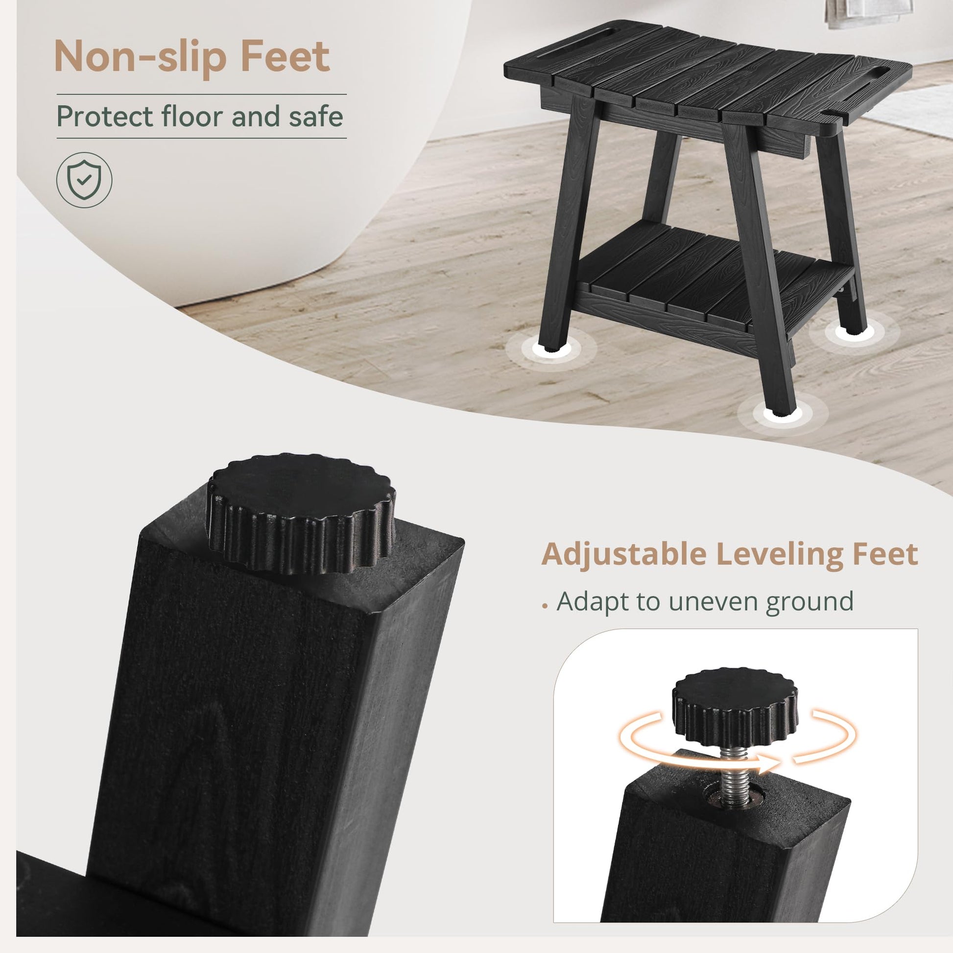 LUE BONA Shower Bench, HDPS Shower Seat with Storage Shelf, Waterproof Shower Chair, Non-Slip Shower Stool for Adults, Elderly, Disabled, Seniors, Large Size, Black