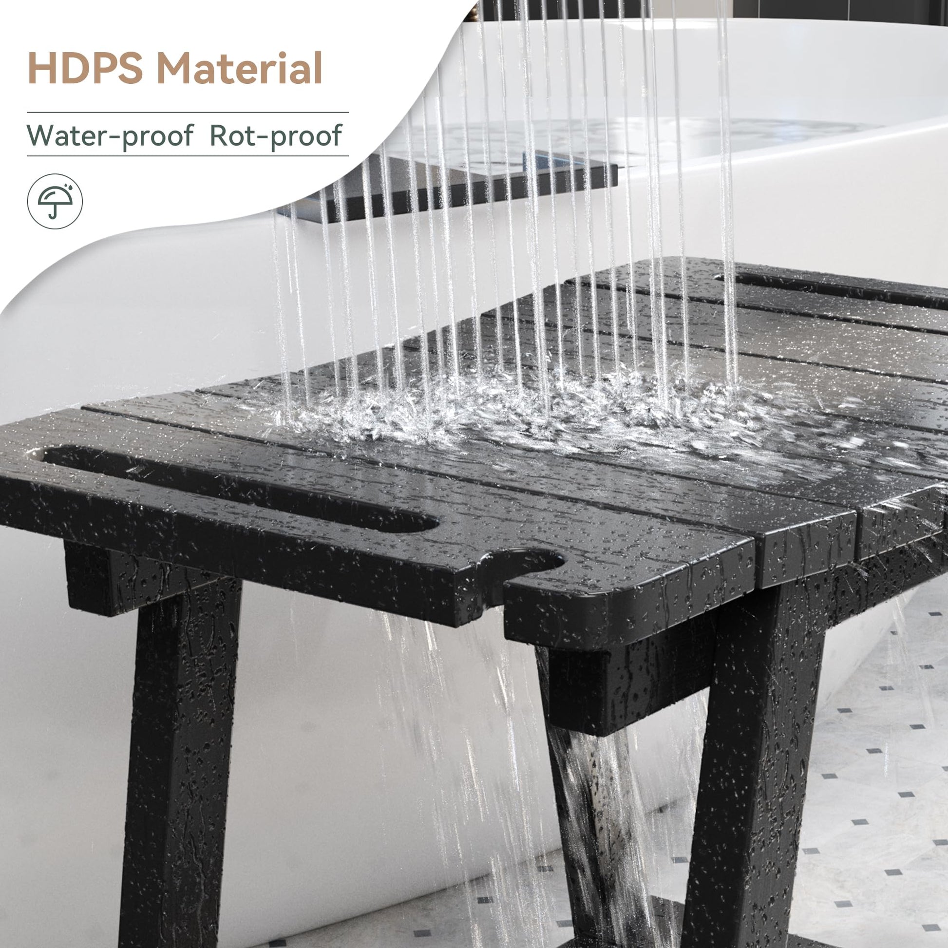 - HDPS Material: This shower bench is made of HDPS, which is highly water resistant and easy to clean, it looks like wood but without the worry of swell and discoloration, it is low maintenance, just wipe it with a cloth