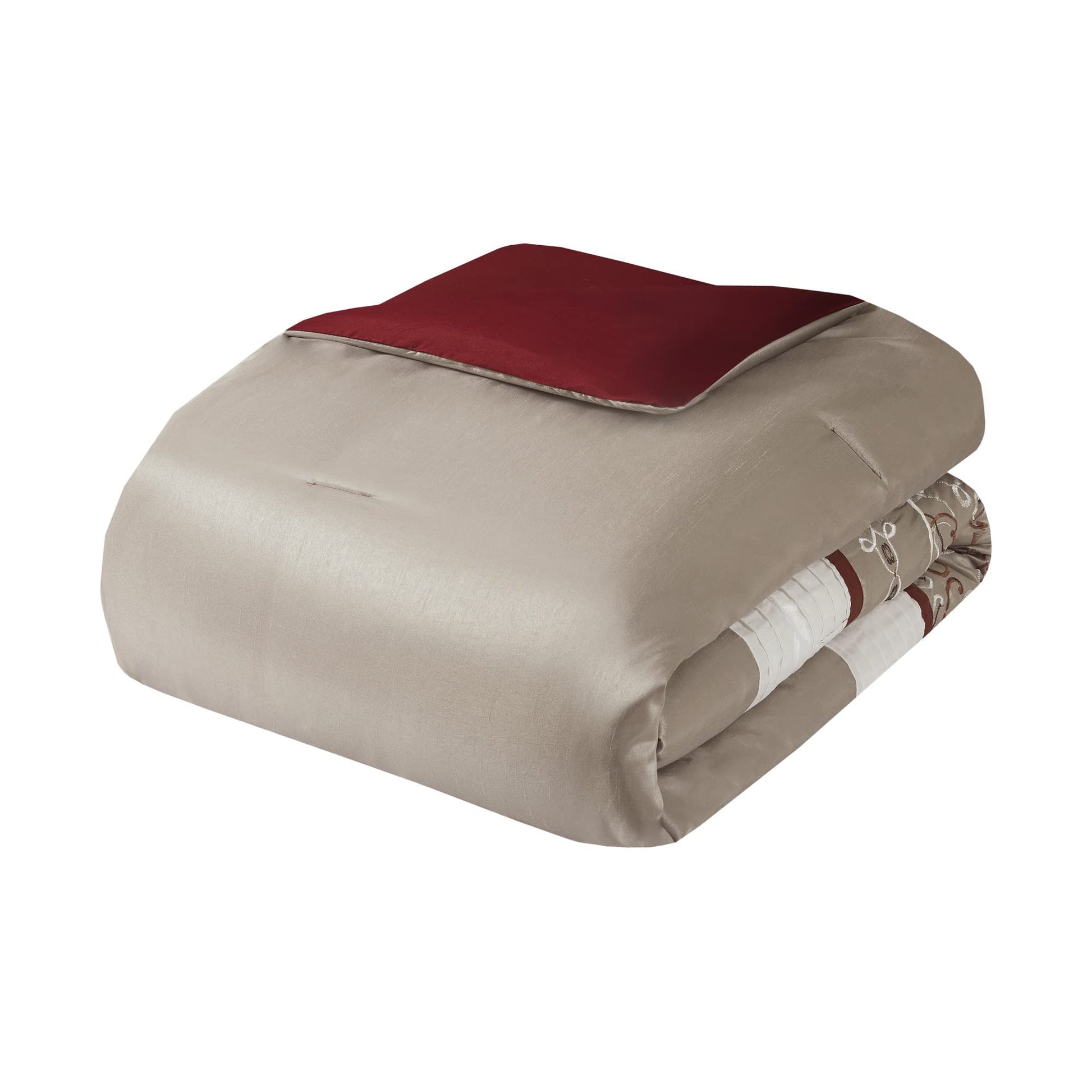 - The faux silk bed in a bag comforter set features multi-color piecing and decorative embroidery creating a rich look in your space.
