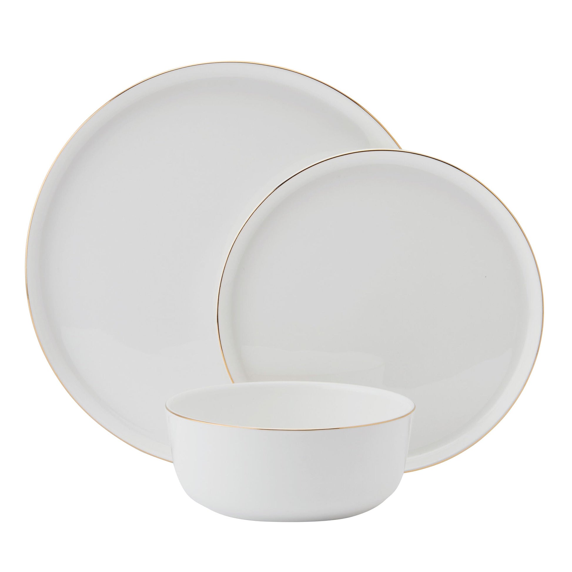- CONTEMPORARY & ELEGANT: coupe-shaped Samantha Gold dinnerware has a distinct, raised edge and a gold accent around the rims to elevate everyday dining or casual entertaining