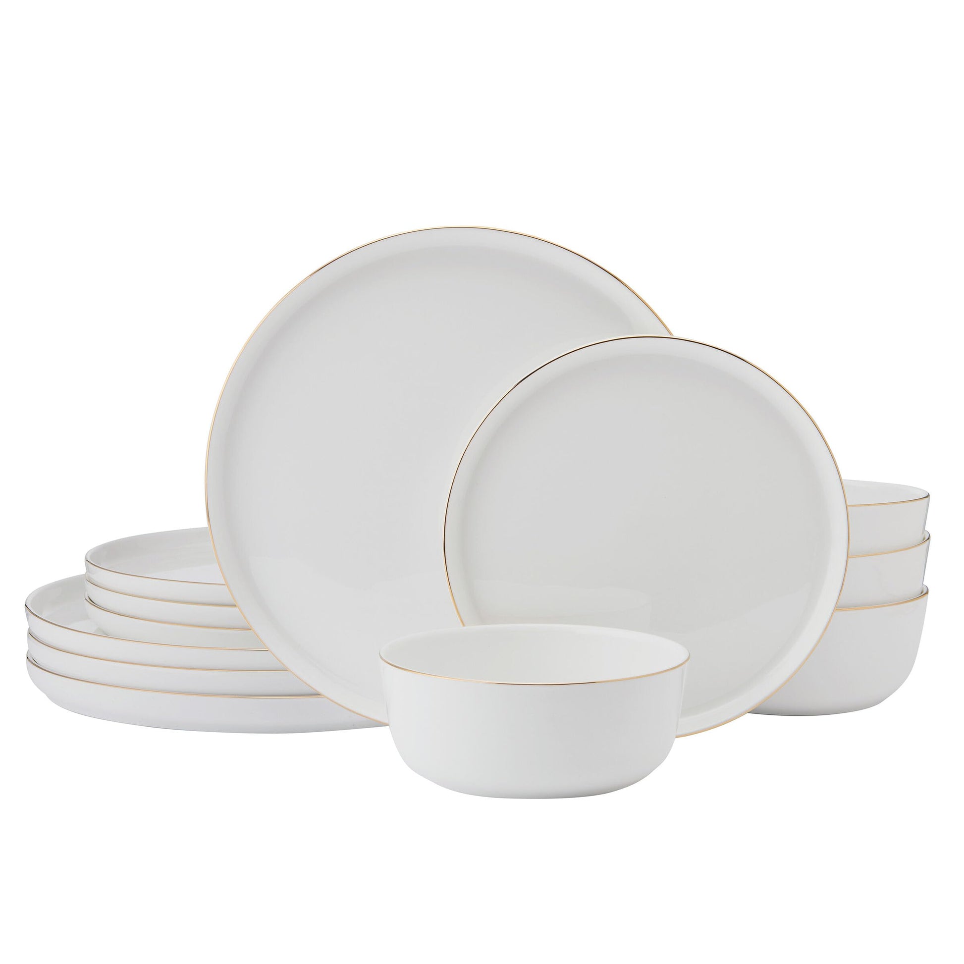 Samantha Gold Bone China Chip Resistant 12 Piece Dinnerware Set