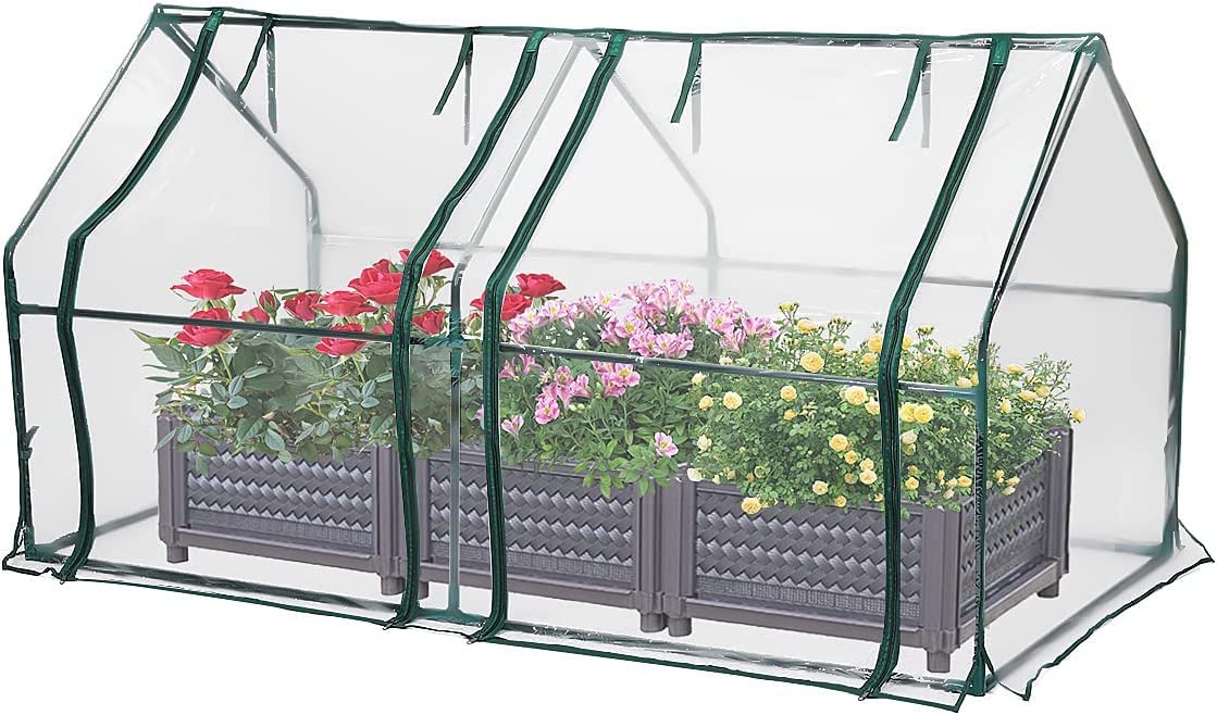 - Clear PVC cover serves as a function to keep internal moisture for an ideal growing environment in any weather. Greenhouse is the perfect way to extend the growing seasons for you