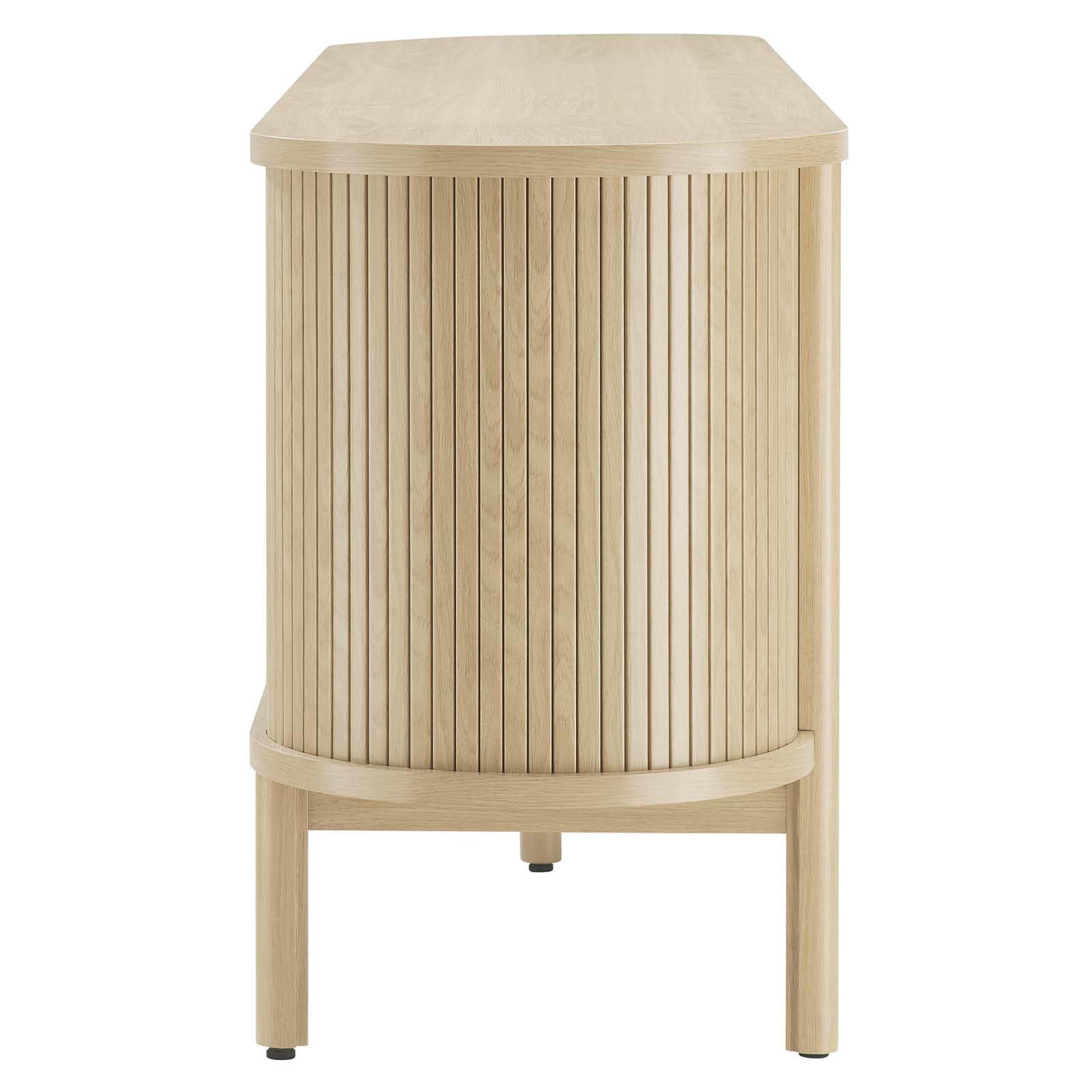 - STYLISH TV STAND - Transform any room with this 71" tv stand. This stylish media console instantly upgrades any decor with its fluted details, a curved silhouette, and organic wood grain
