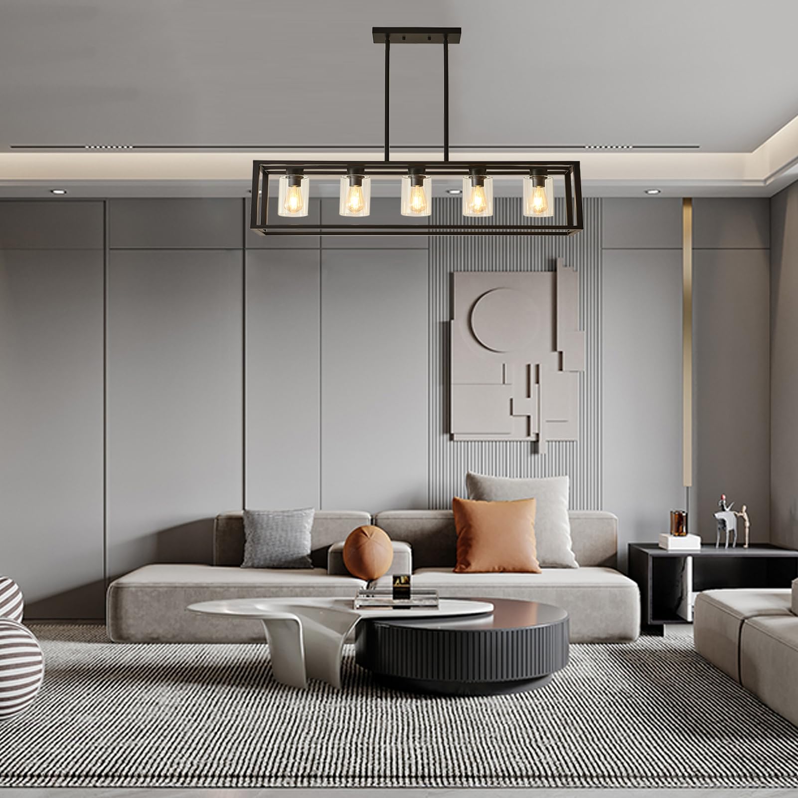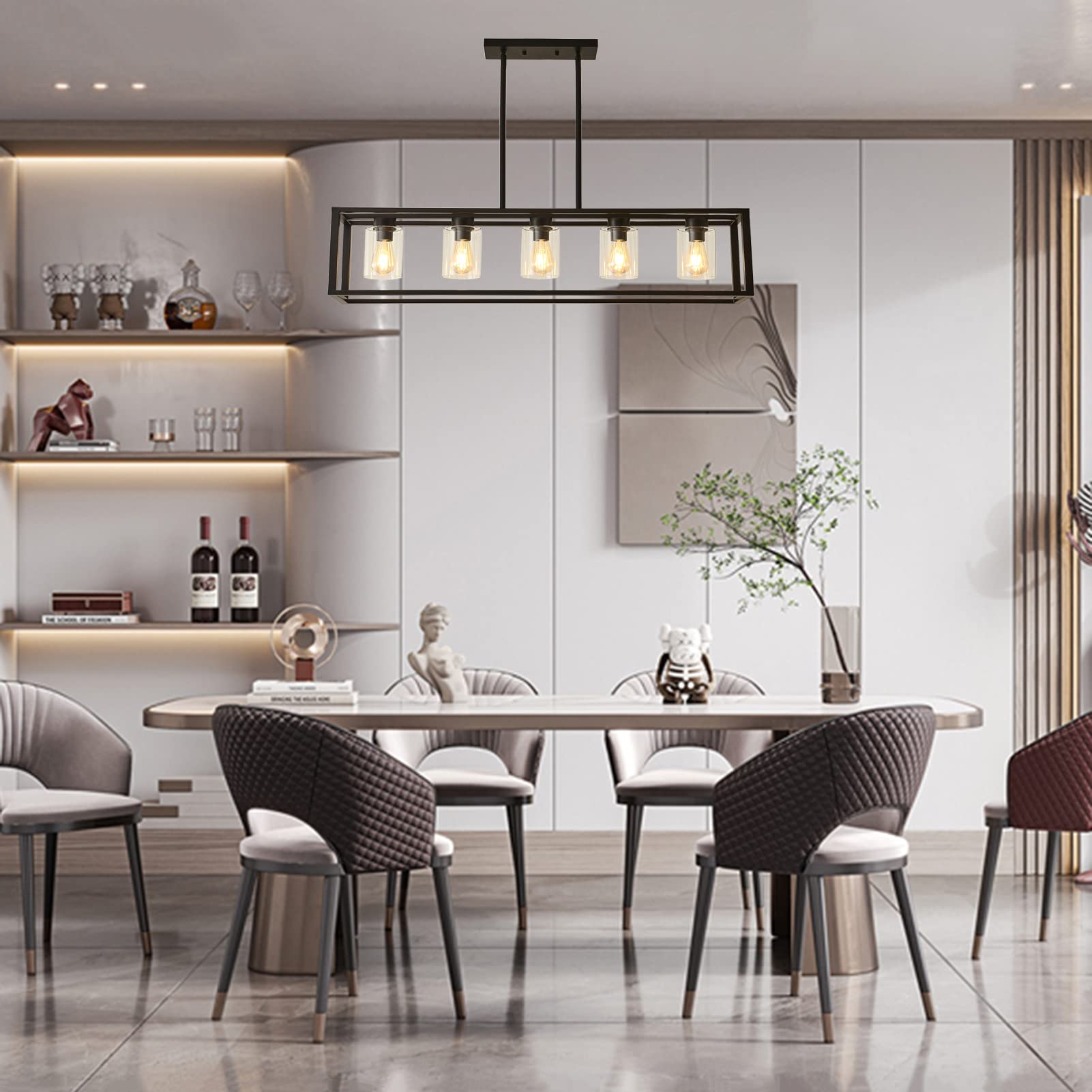 - The dining room lighting fixtures are equipped with high quality metal body and transparent glass shade, exterior black coating, upgraded matte spraying, corrosion-resistant, will bring a simple and stylish design to your home.