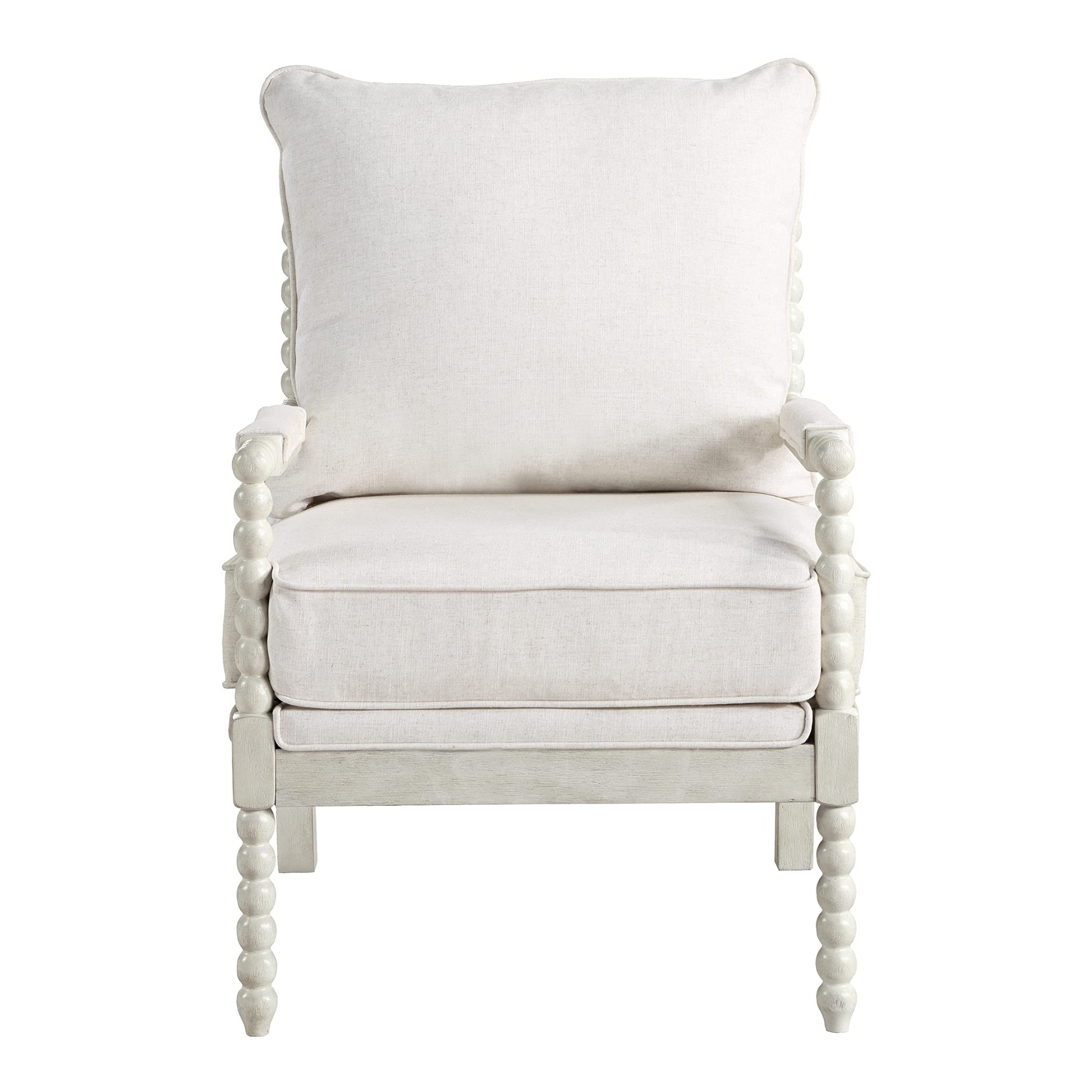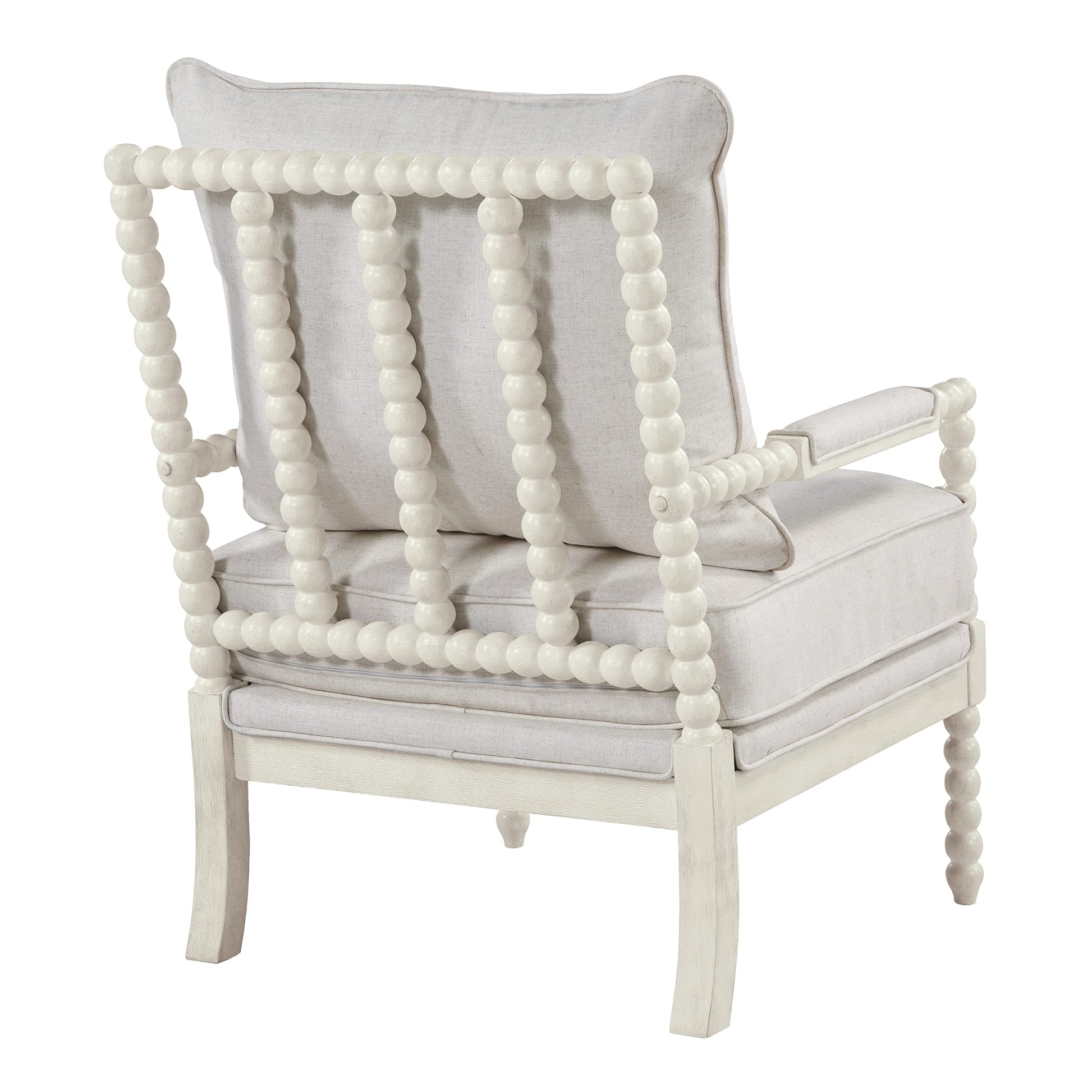 Kaylee Spindle Accent Chair with Antique White Wood Frame, White Linen Fabric