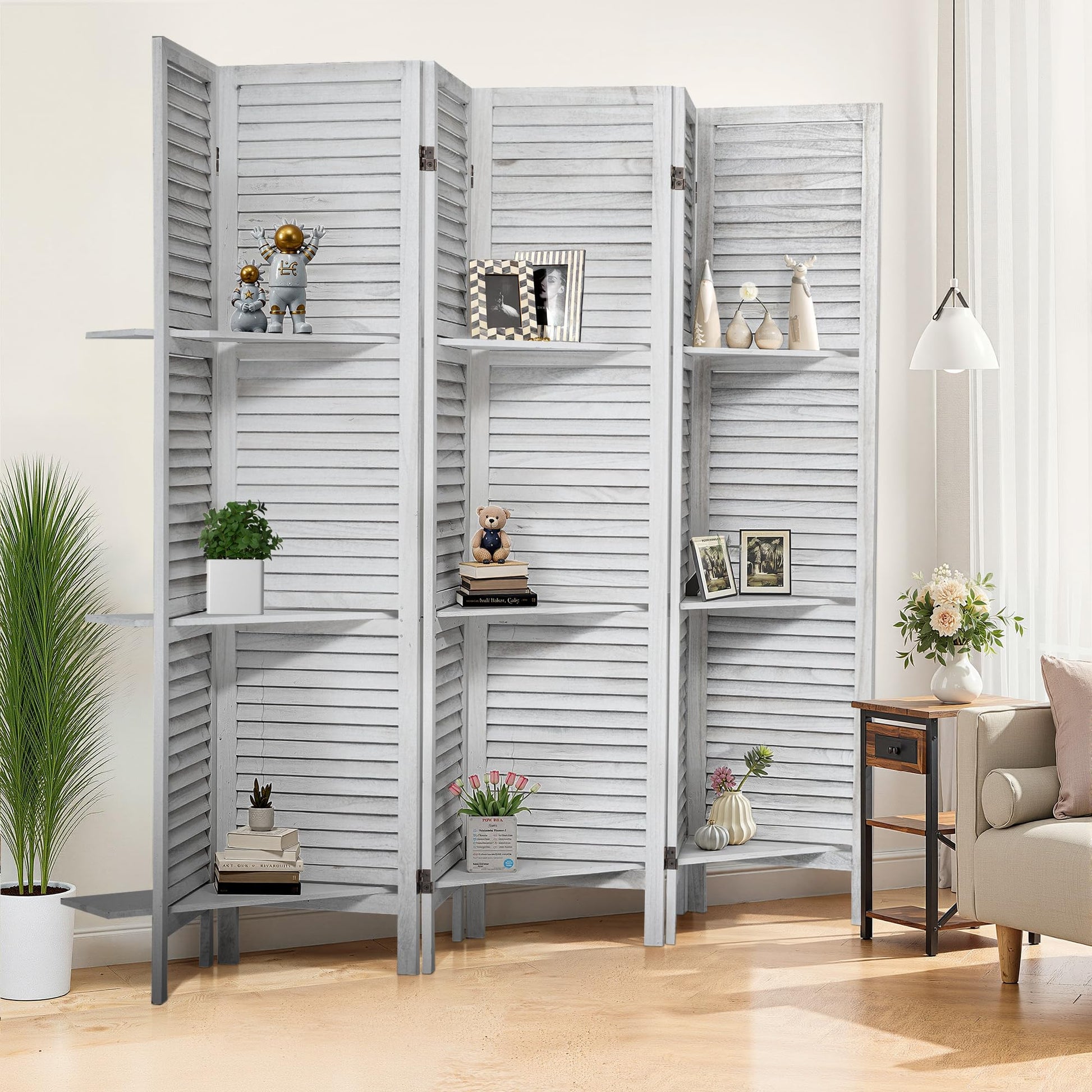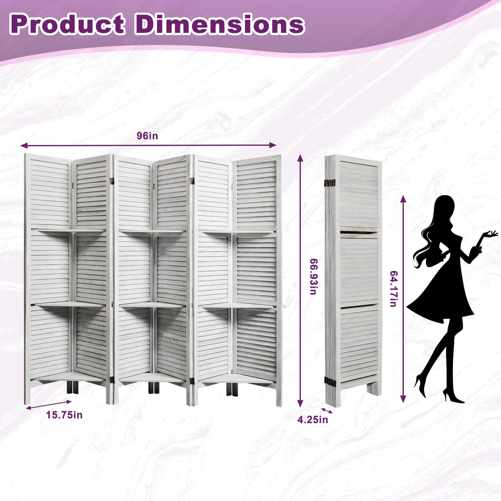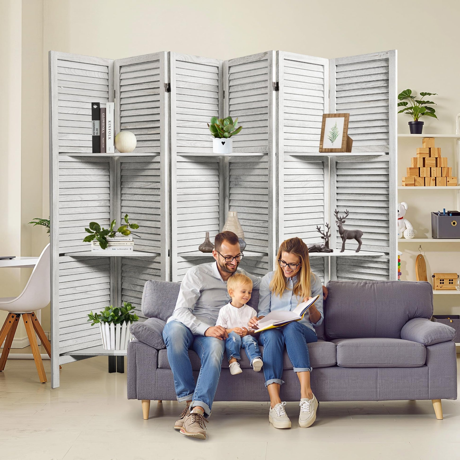 Osparple Room Divider with Shelves, 5.6FT Folding Room Divider Panel and Privacy Screen, 6 Panel Partition Wall Divider for Room Separation, White
