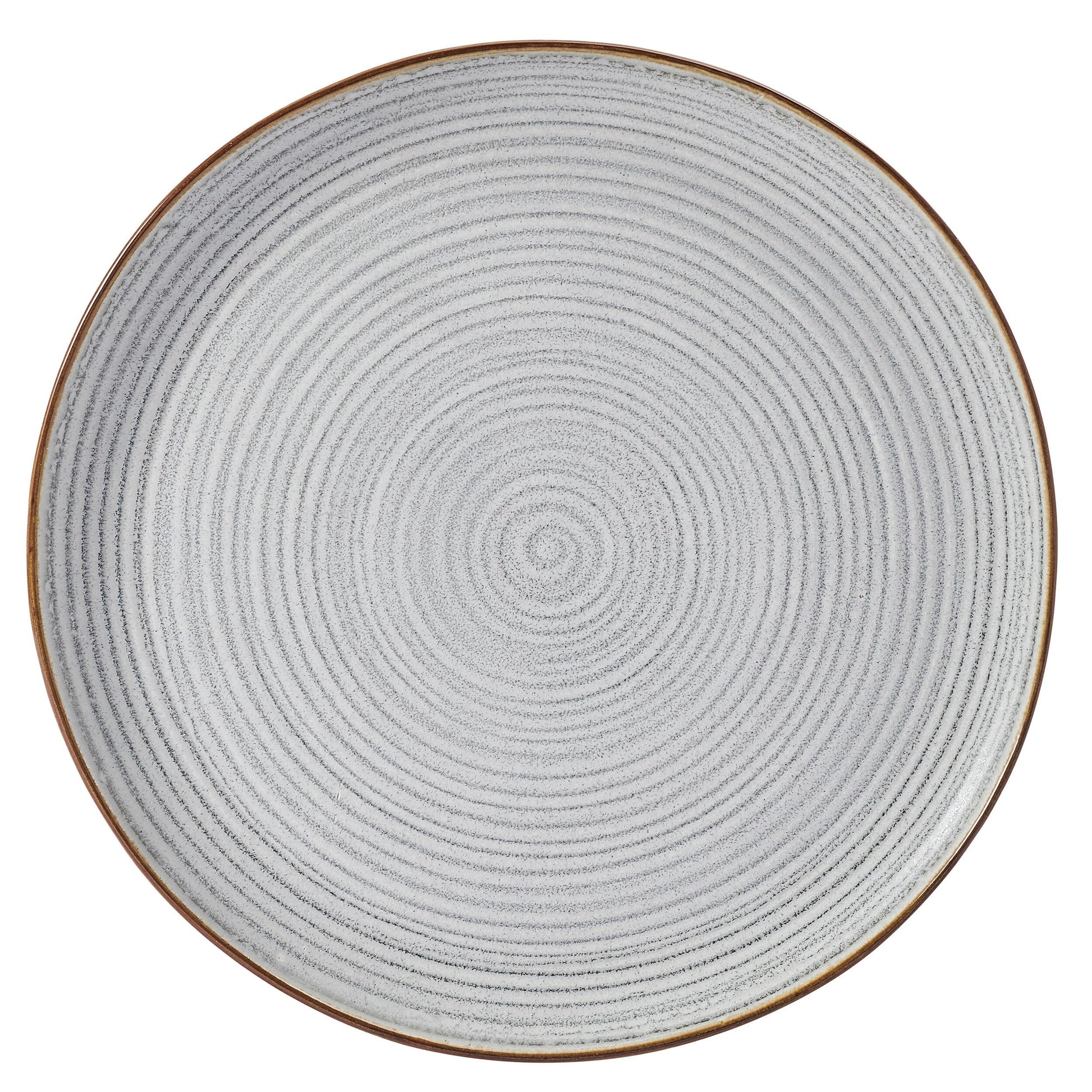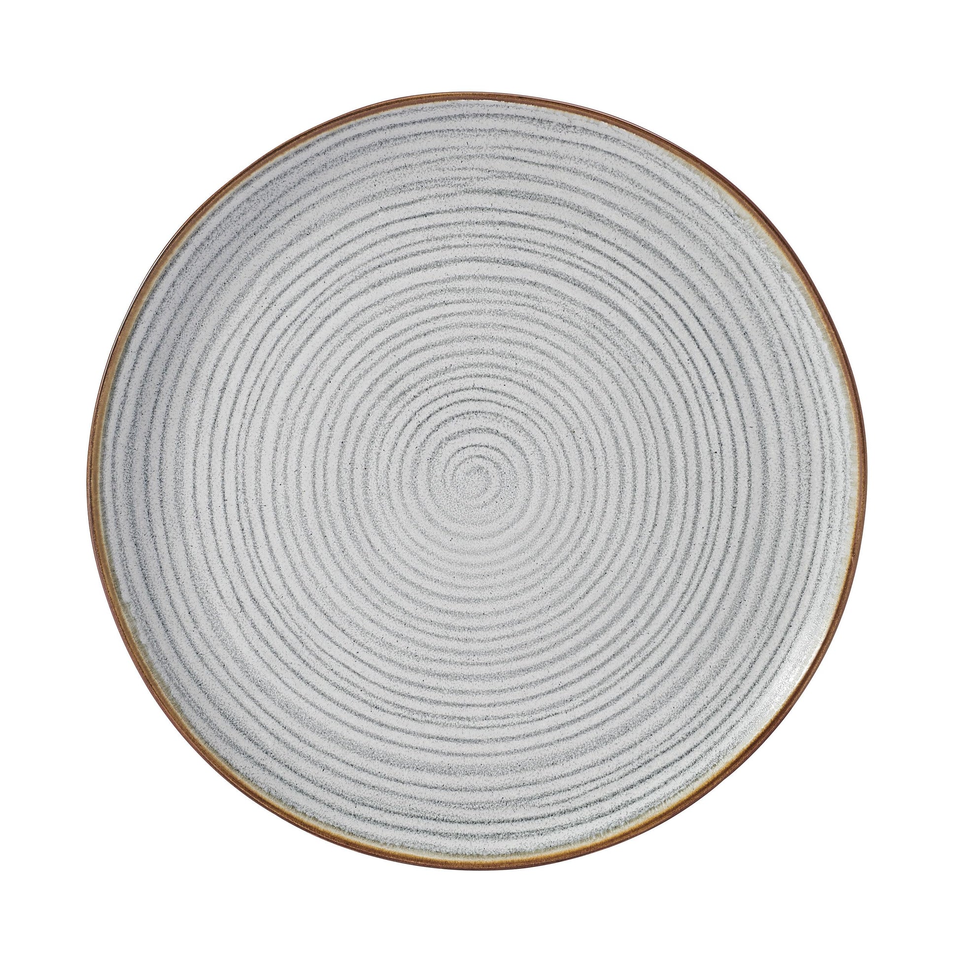 - ORGANIC APPEAL: Rowan Gray dinnerware brings earthy style to the table with concentric circles swirling around gray pieces with a warm tan rim