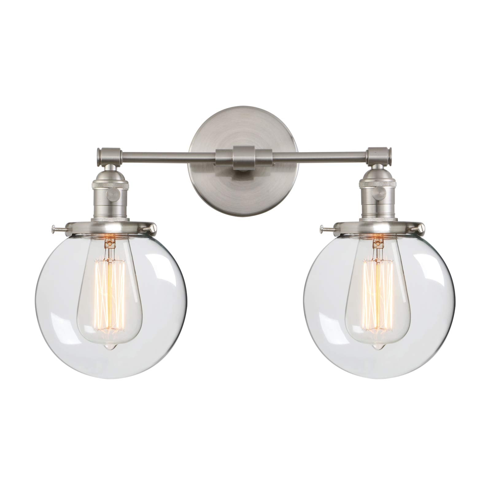 Industrial Wall Light Hardwired Double Wall Sconce with 5.9 Inches Round Clear Glass