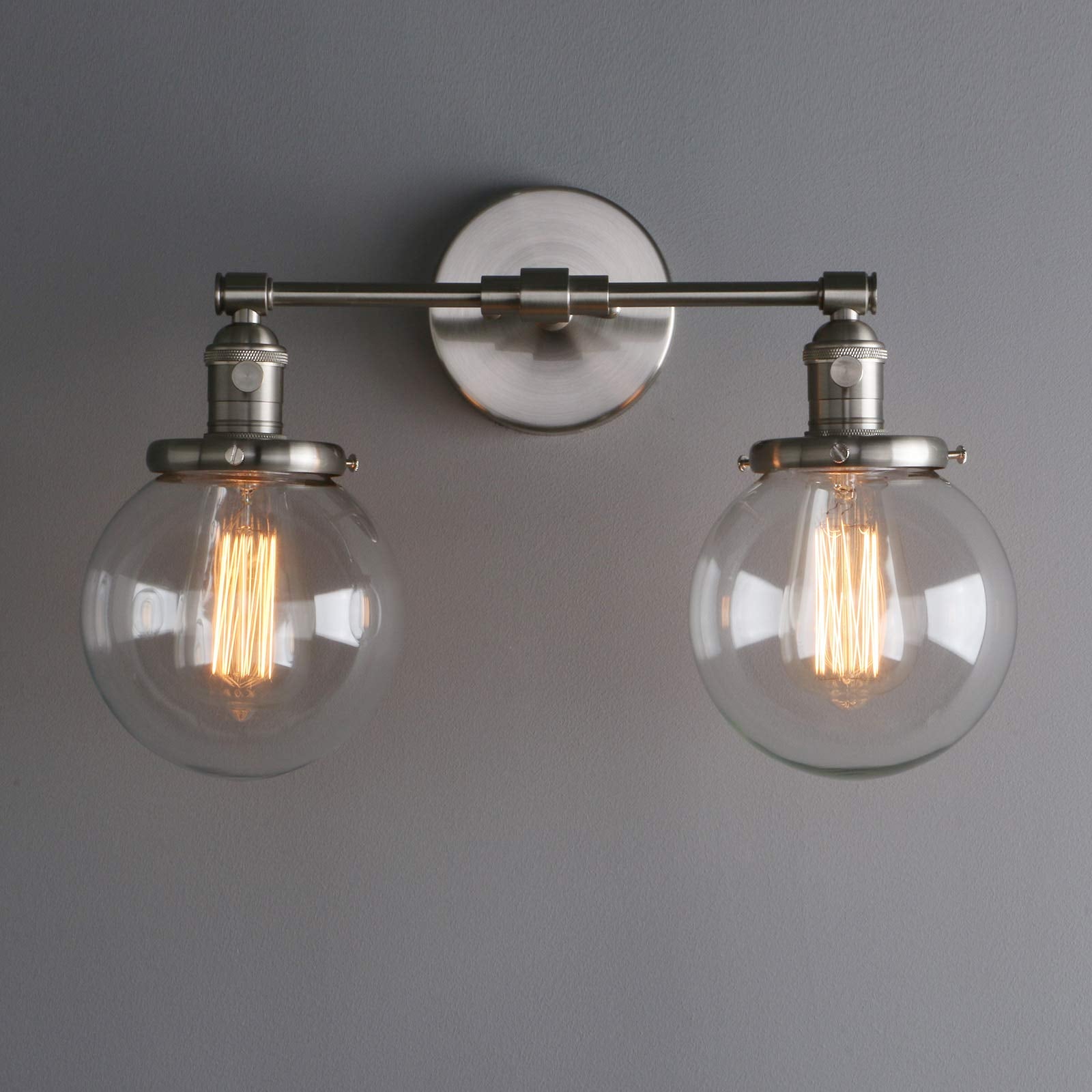 - {Handmade lampshade} Glass lampshade adopts traditional hand glassblowing industrial technique to perfect glass’s artistic style with some inner bubble. Related globe industrial light fixture, please kindly search: 1-light wall sconce:B072BY2XJH(black) and B0739SNQT8(bronze);1-light plug in wall sconce: B0776CDXW6(black) and B0776826VV(brushed)1-light pendant light: B072KJX5SZ(copper);2 light wall sconce: B0753BLLX4 ; 3 light chandelier light: B07FCXHN14.