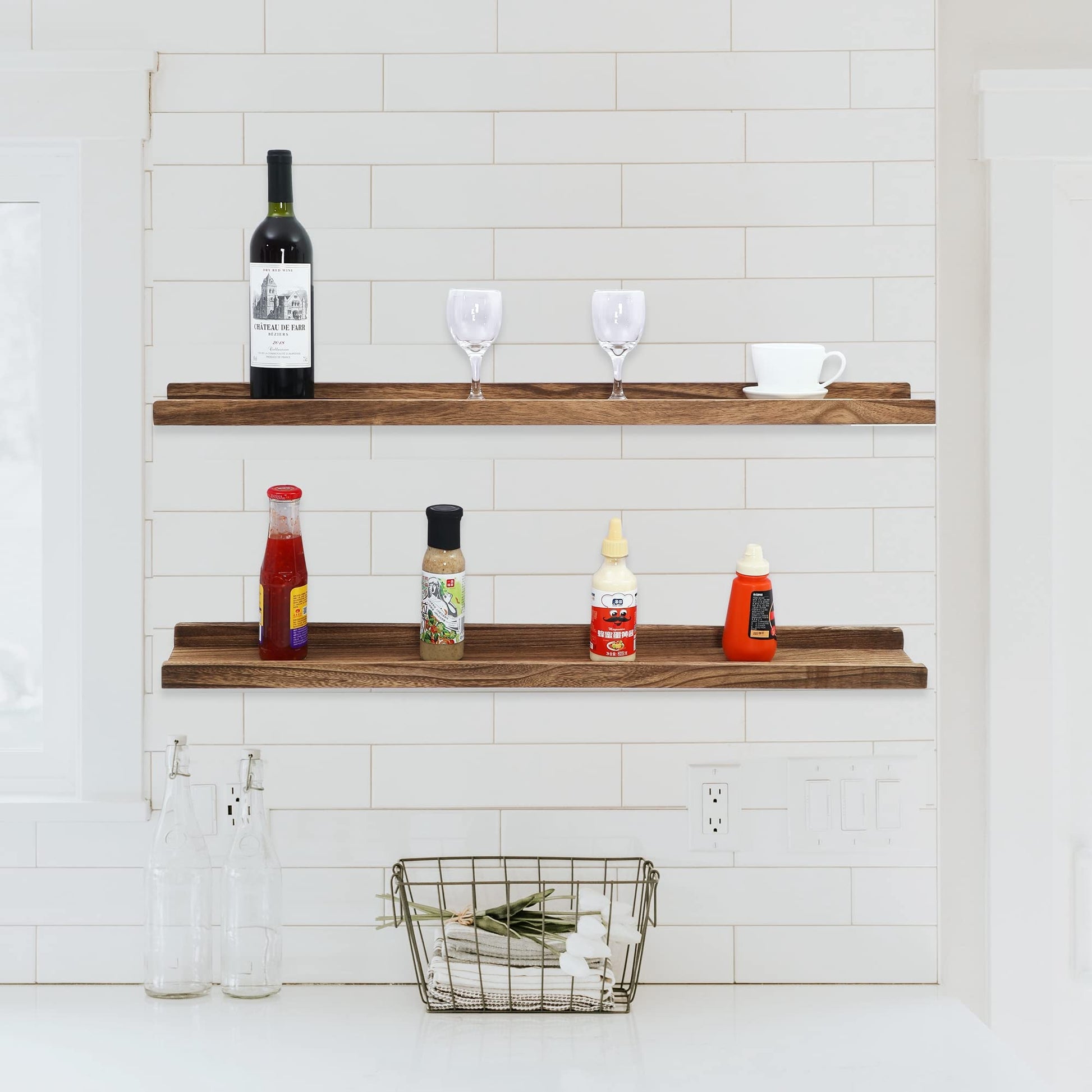 - Multi-Functional:The picture ledge shelf can store and show off your favorite photo frames,small green plant,books,trophies,various spice bottle,wine glass,towels,toilet paper,cosmetic,aromatherapy......in your living room,bedroom,kitchen or bathroom