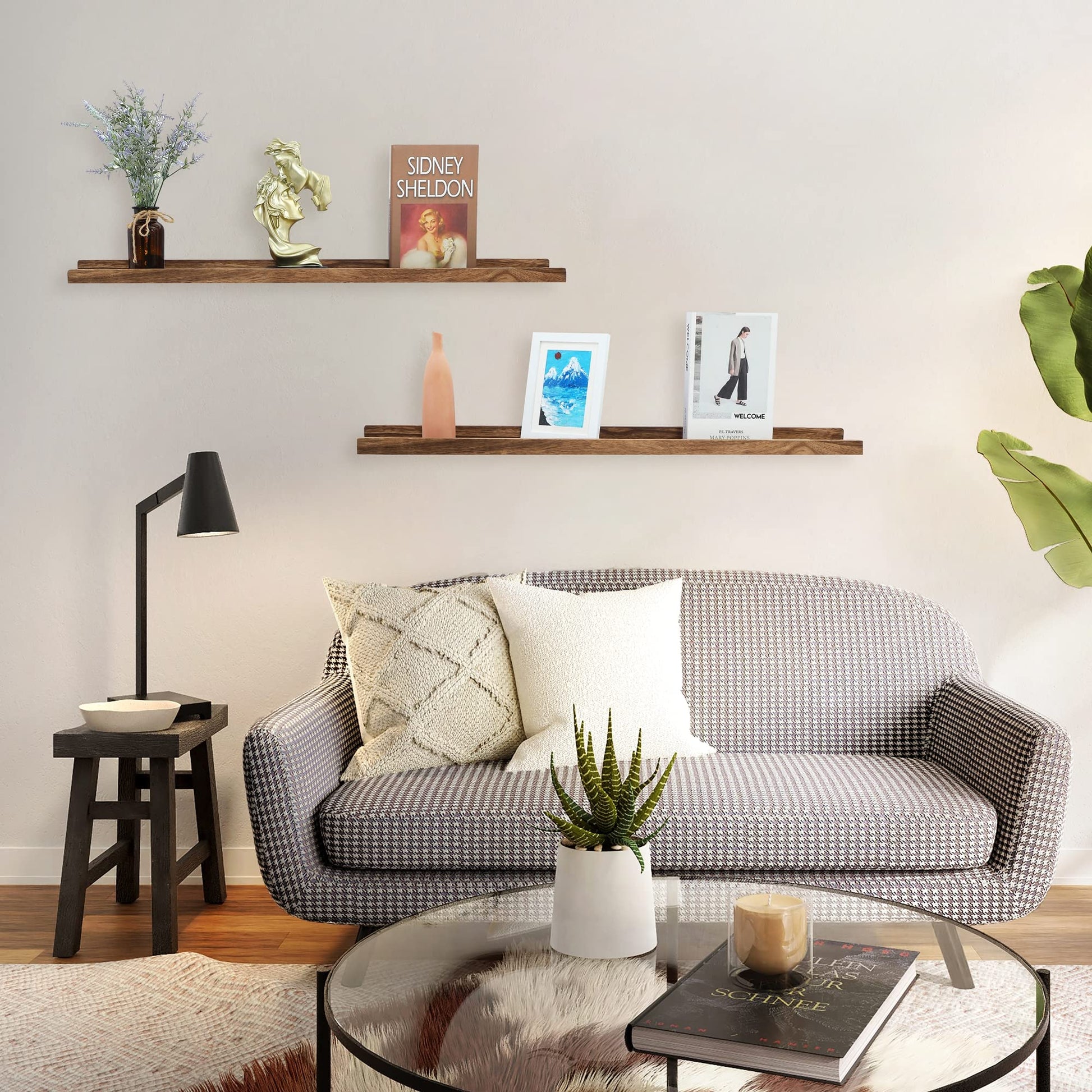 - Reliable Material:All long floating shelves are made of solid wood which lightweight but sturdy and durable,so each picture shelf can holds up to 25lbs.The surface with beautiful wood texture,they will add some rustic feel to your room