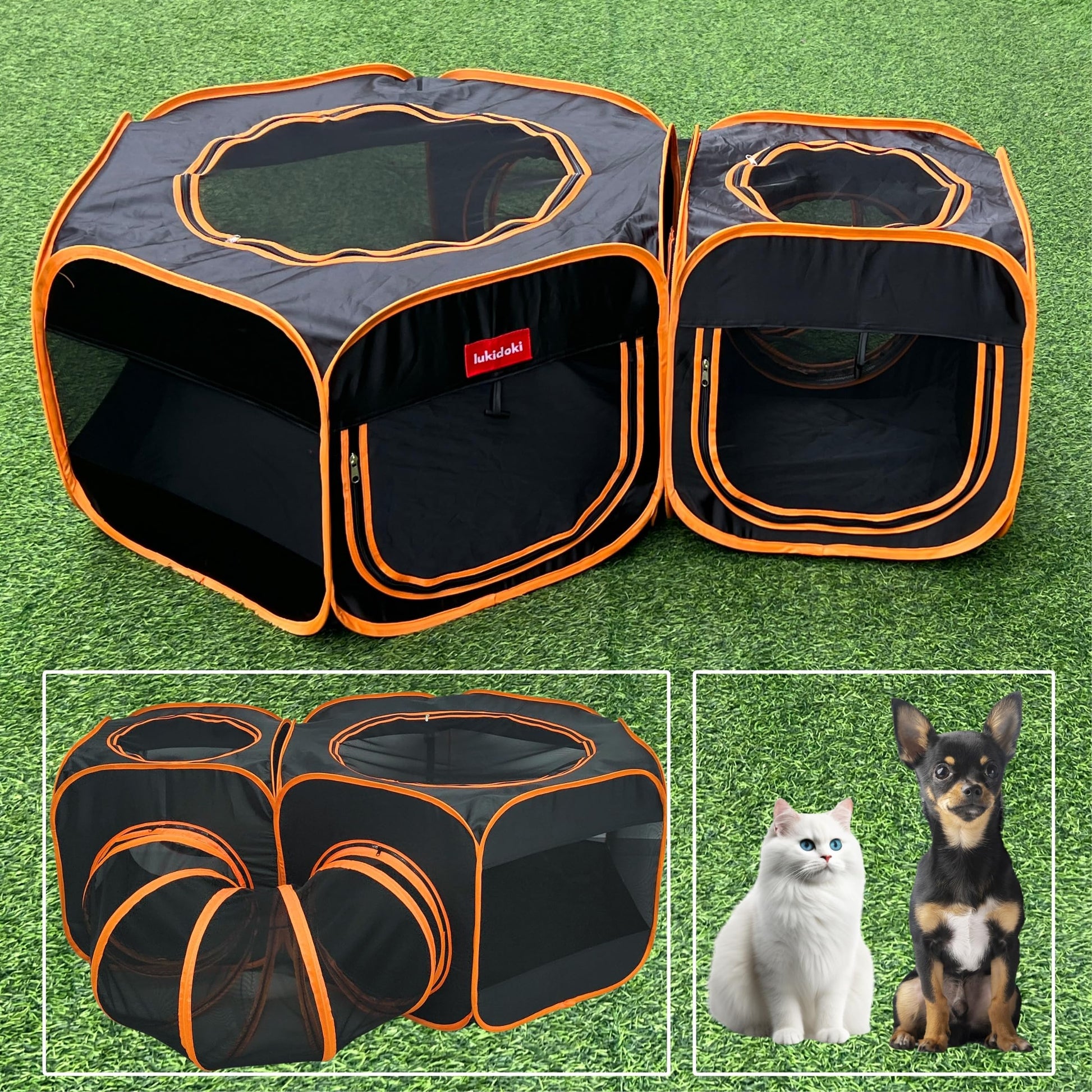Portable Cat Playpen 2-Room with Tunnel, 3-in-1 Pop-up Cat Dog Crate Play Enclosure