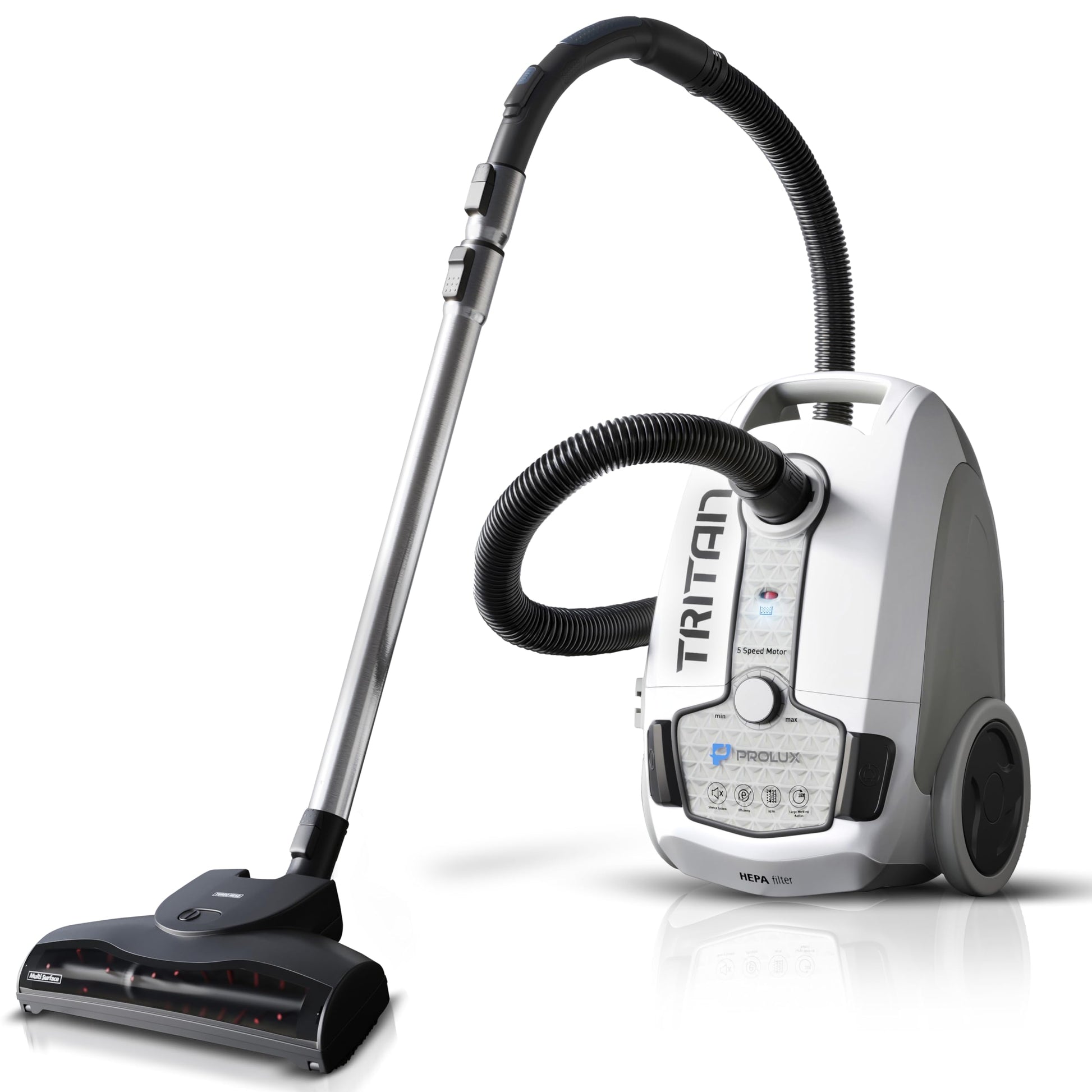 Tritan Bagged Canister Vacuum Cleaner with Sealed HEPA Filtration, 5-Speed Motor