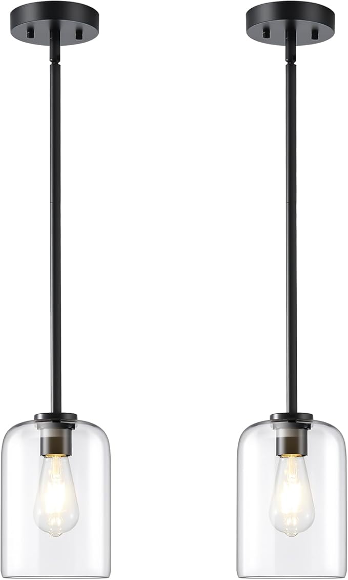 - Versatile Style for Any Space: The matte black finish and clear glass shade blend modern, farmhouse, and industrial aesthetics, making this pendant lighting suitable for kitchen island , over sink, dining room , above dining table, living room, bedroom, vanity, bathroom, entryway, hallway, home office, and more. It provides both task and ambient lighting to enhance any space