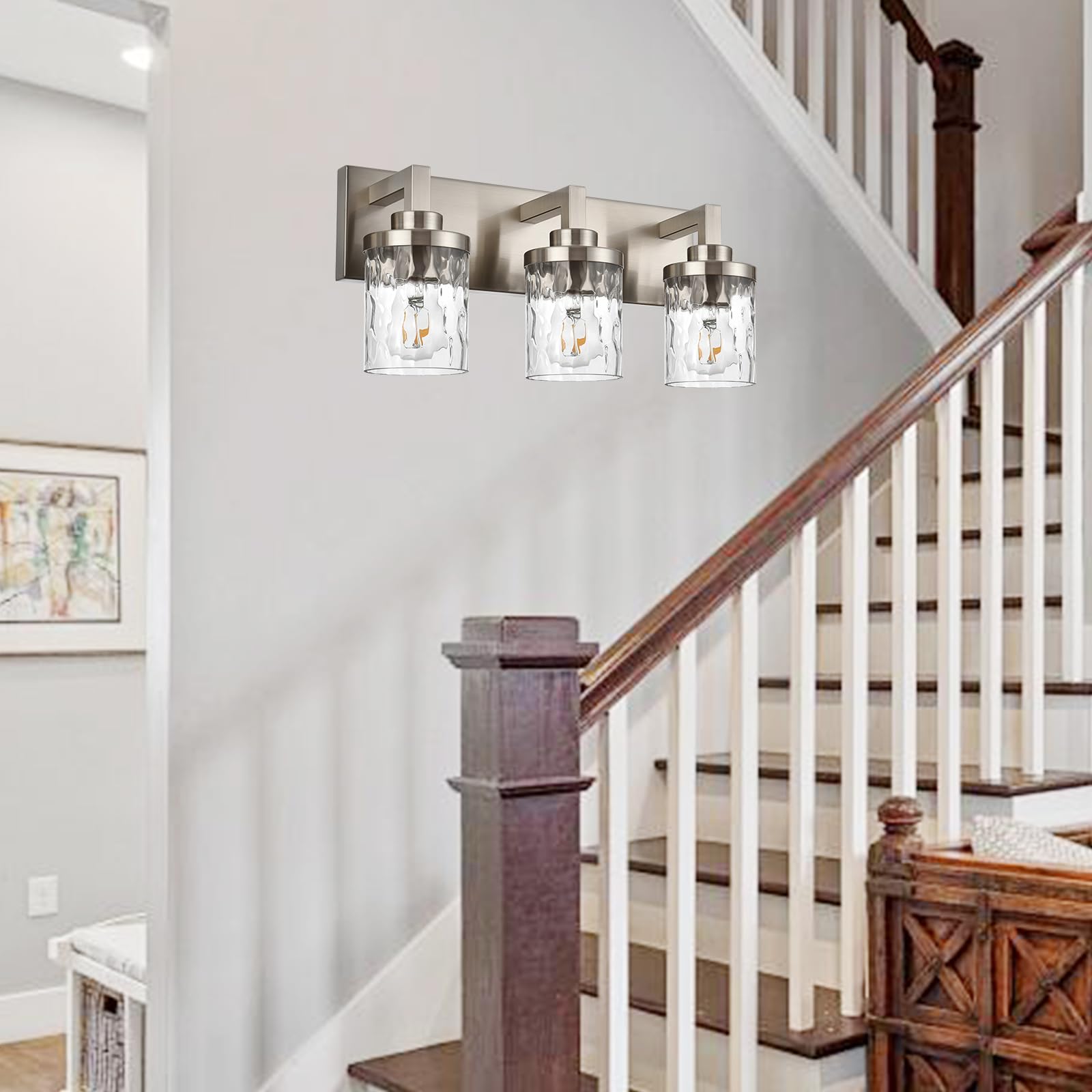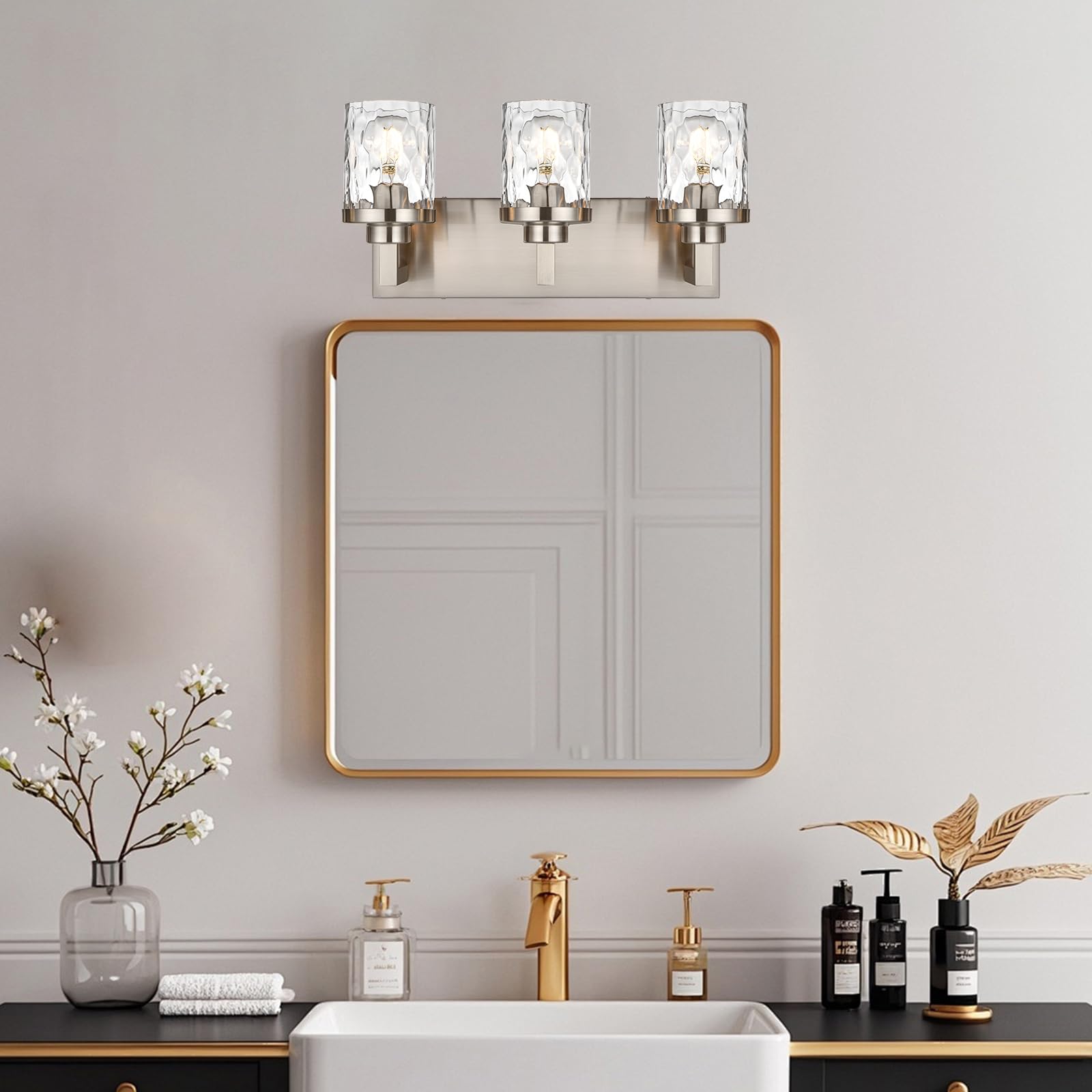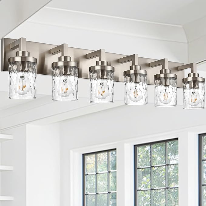 - MODERN DESIGN: Featuring Elegant unique Clear Hammered Shade with clean-lined metal arms, upgrade your bath with this modern simple design bathroom vanity light fixtures that bring a modern urban, vintage, and traditional room styles for your space.