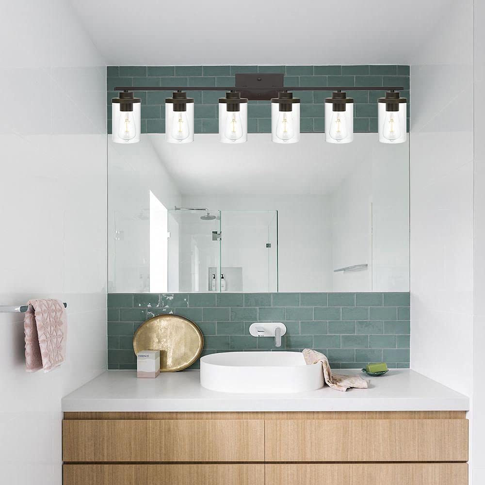 Farmhouse Vanity Lighting Fixtures Oil Rubbed Bronze 6 Light with Glass Shade Bathroom