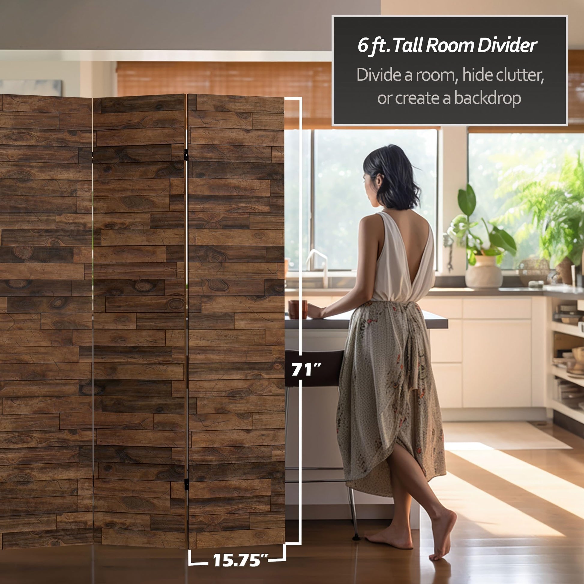 - Stunning Photo Prints: Featuring the texture and color of fine carpentry with two high resolution photo prints on one room divider. Printed with fade-resistant, high color saturation ink, these vibrant images are perfect for the home or office.