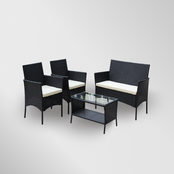 - The Rhomtree 4 pcs rattan furniture set contains 1 loveseat, 2 single chair, and 1 coffee table seat cushions for all seats, which will be a great additional to your outdoor living space, It makes your family could enjoy a leisurely afternoon tea time.