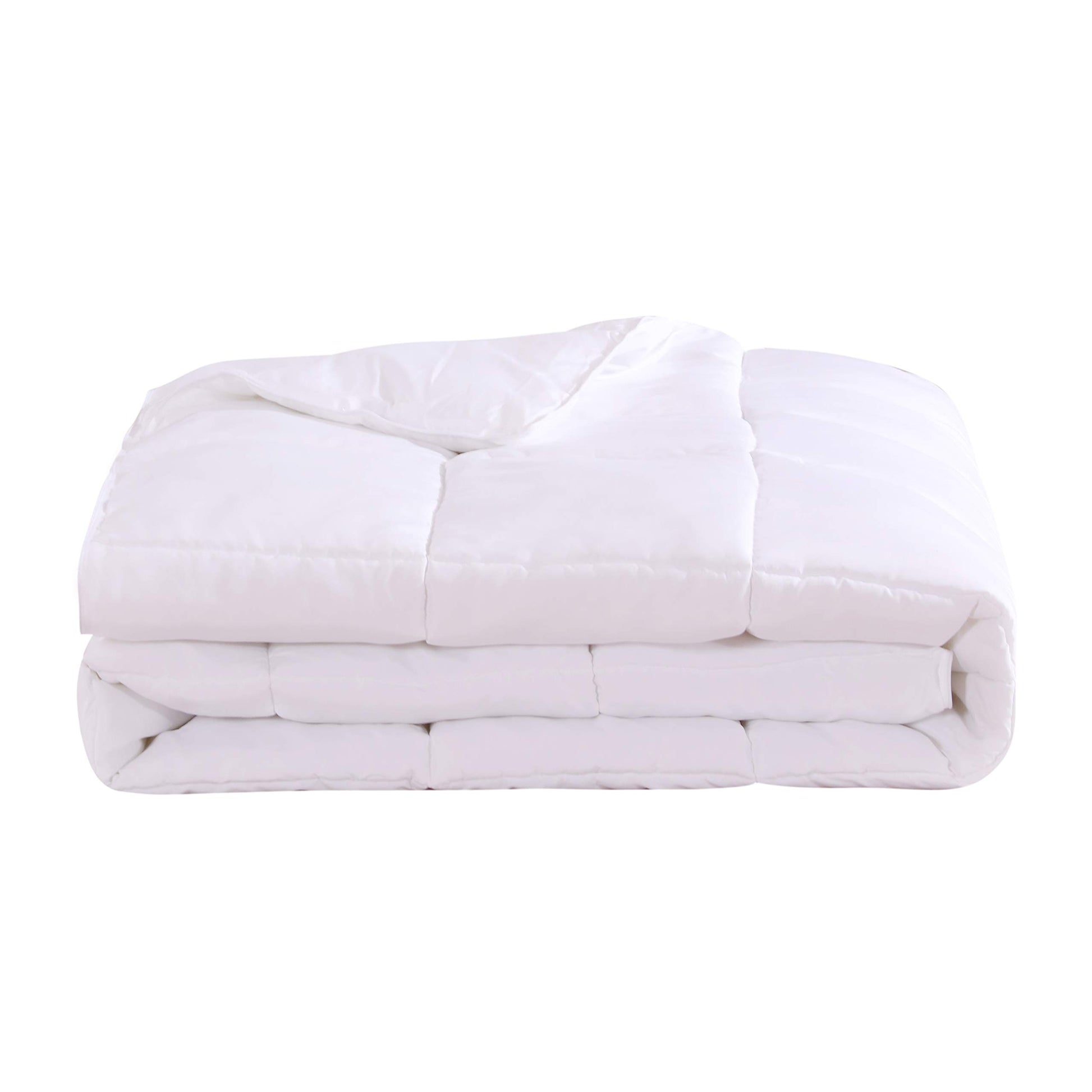 - Luxury goose down-alternative comforter provides medium warmth for year-round comfort