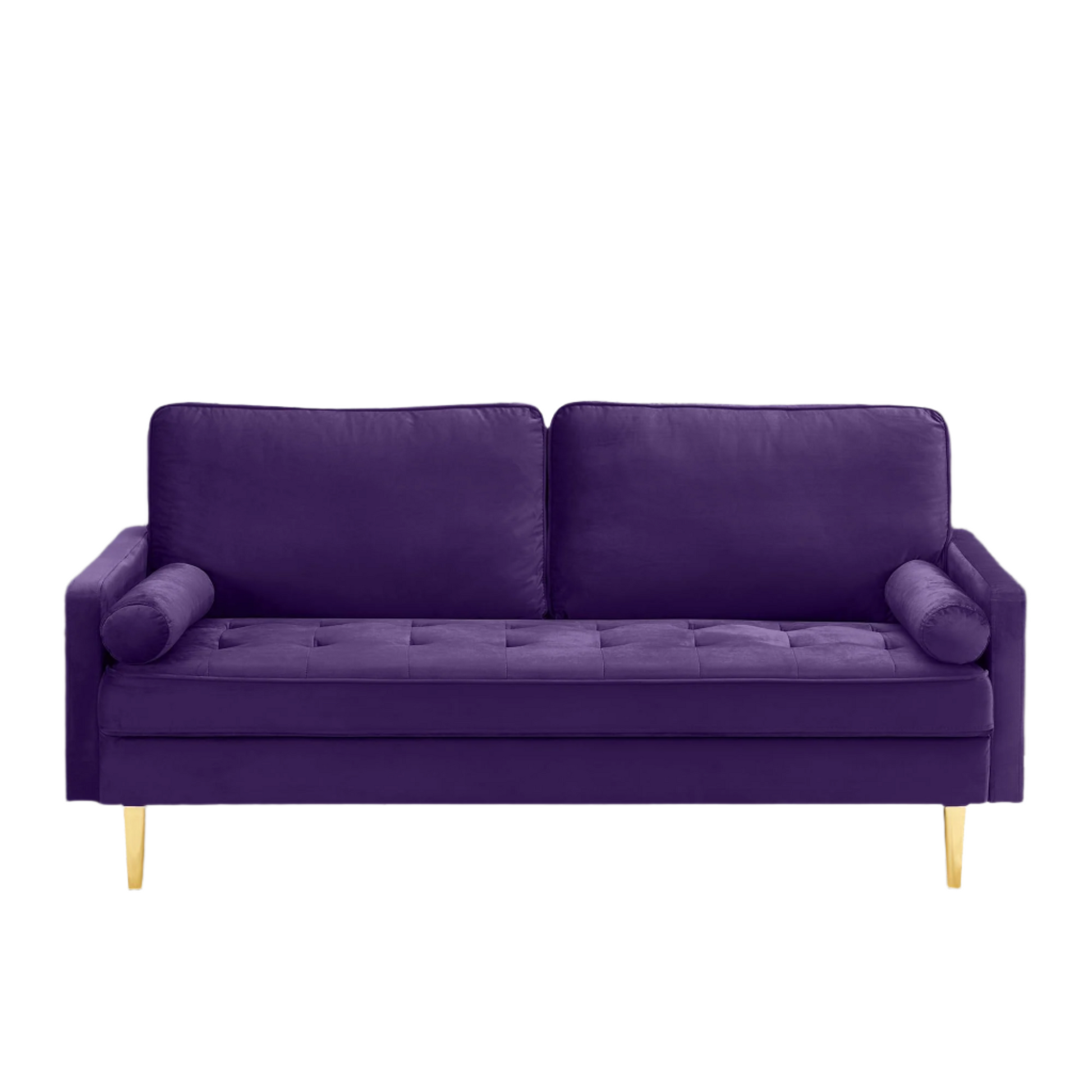 - The velvet upholstery of the velvet sofa exudes opulence and sophistication. Its rich and lustrous appearance instantly elevates the visual appeal of any room. The combination of the velvet fabric, lumbar pillows, and golden legs creates a stunning and luxurious aesthetic that enhances the overall ambiance of your space.