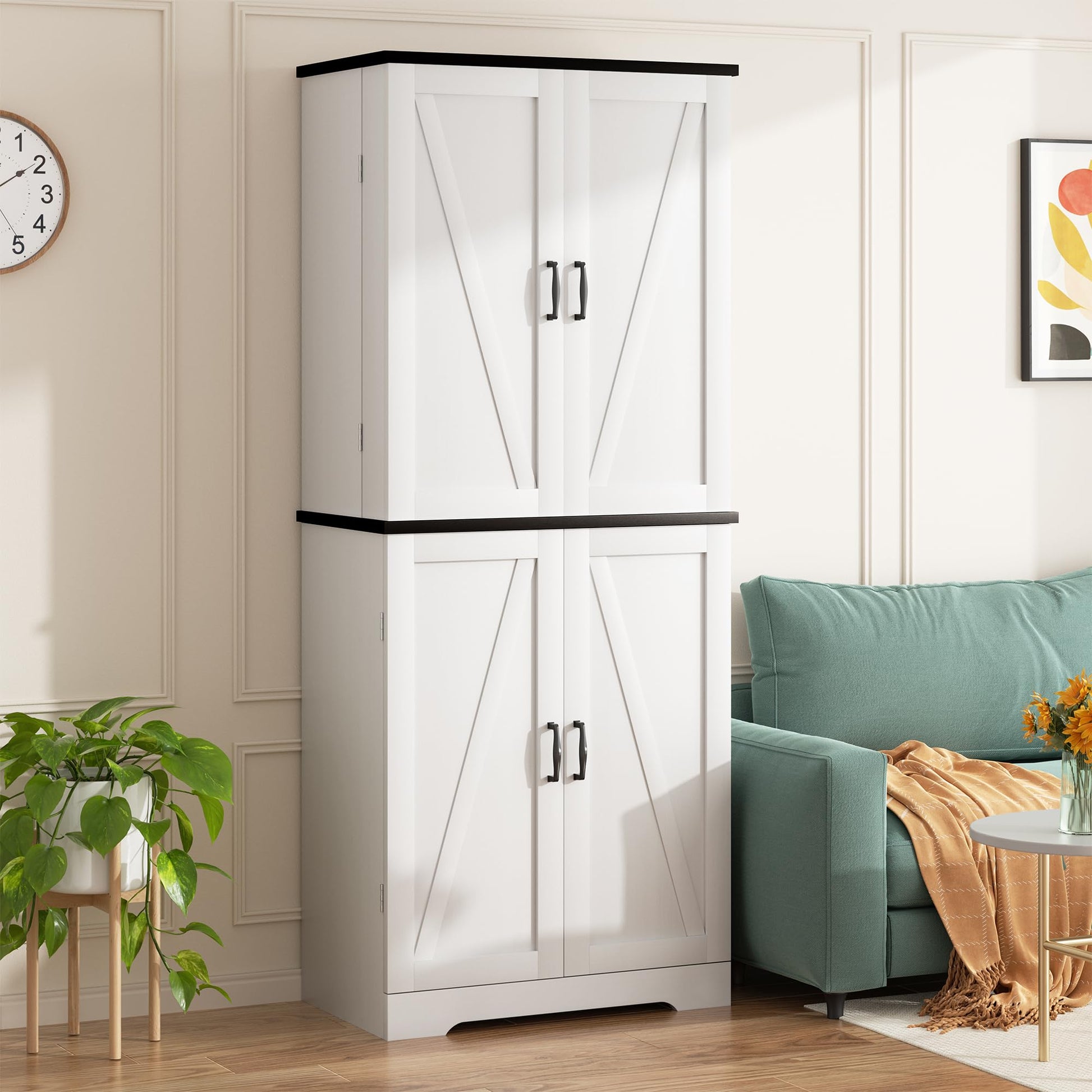 Kitchen Pantry Cabinet, Freestanding Farmhouse Storage Cabinet with 8 Door Shelves