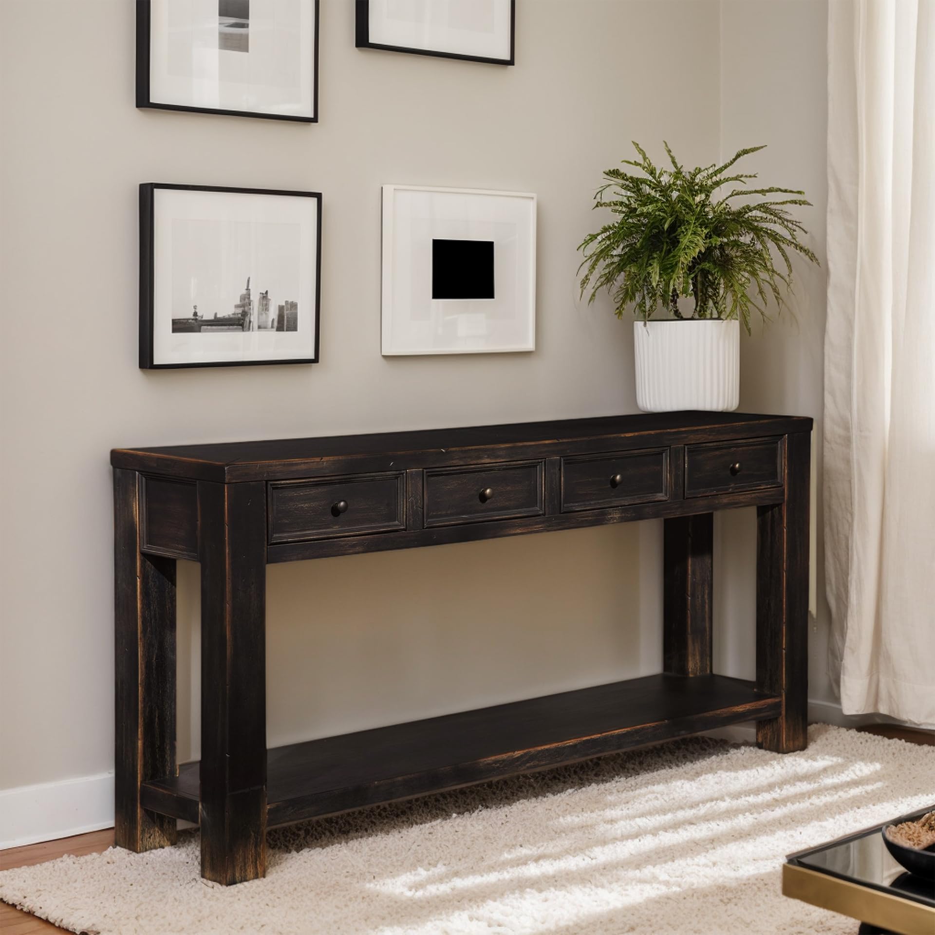 Gavelston Rustic Sofa Table with 4 Drawers and Lower Shelf