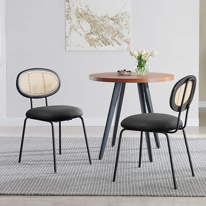 Dining Chairs Set of 2, Cane Back Dining Room Chairs with Solid Wood Back