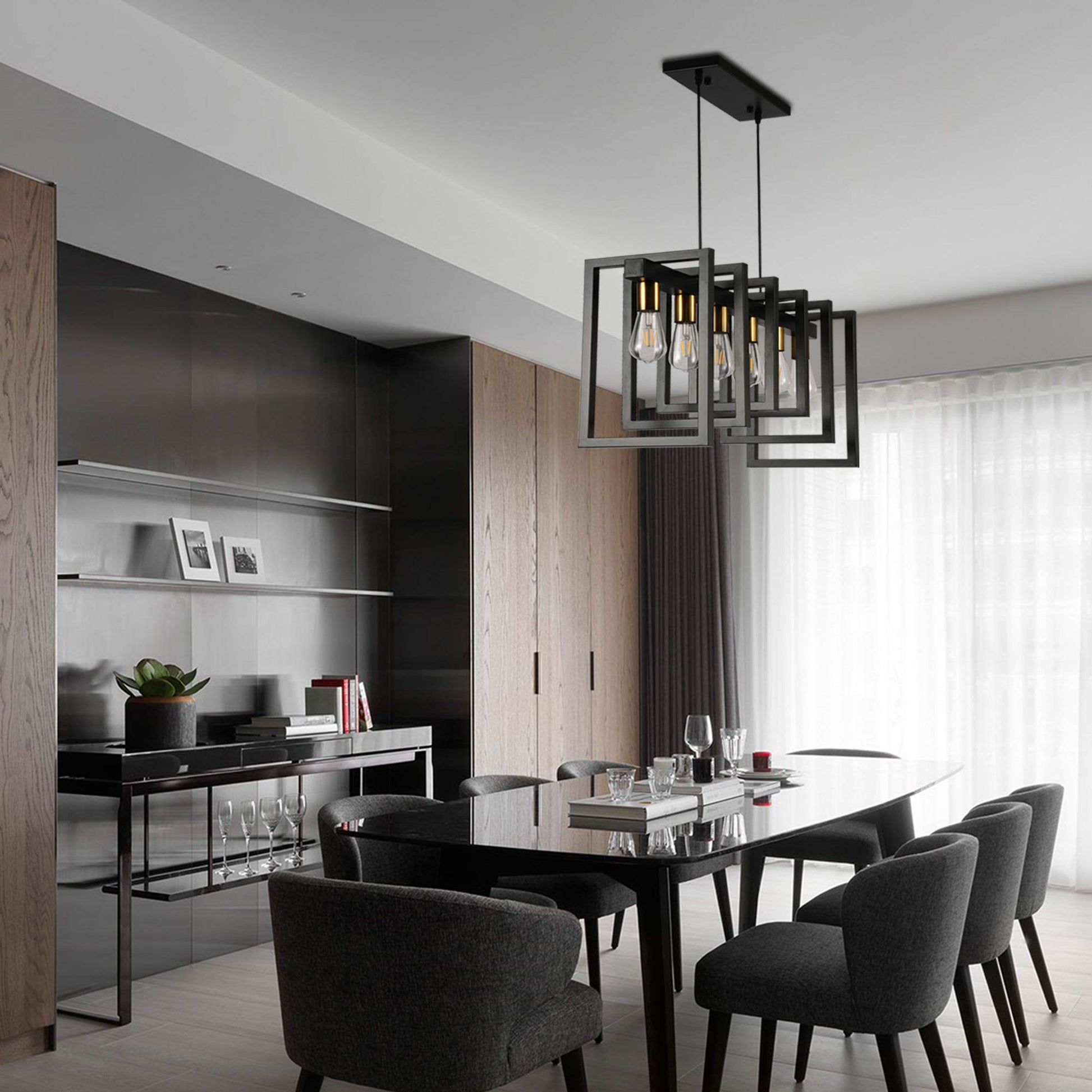 - MODERN CHANDELIER - This fashionable linear pendant kitchen island light fixture is made of sturdy iron metal with downward light bulb design in the metal square. Appealing linear feel for you to use for own house or business premises. 6 pcs Max. 60-watt E26 base LED/CFL/other bulbs required(not included in package).