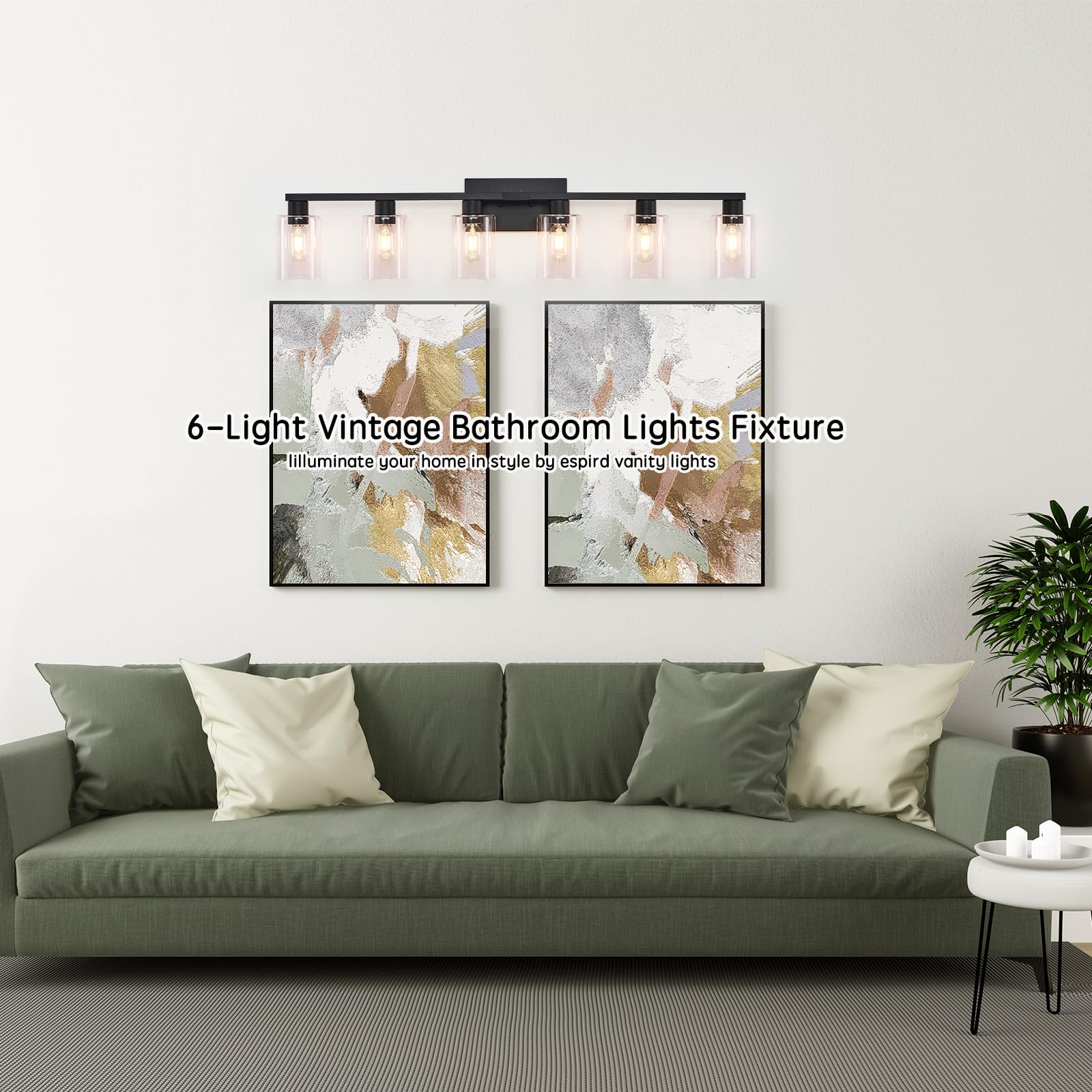 6-Light Vanity Lights,Large Vanity Light for Bathroom Black Vanitii Lights with Clear Glass