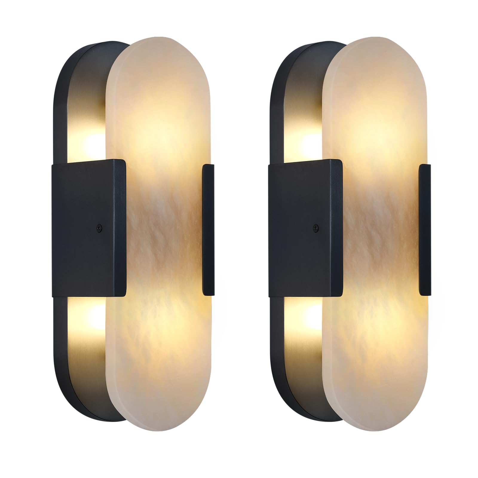 13.8 in Matte Black Alabaster Wall Sconces, Natural Marble Wall Sconces Indoor Alabaster