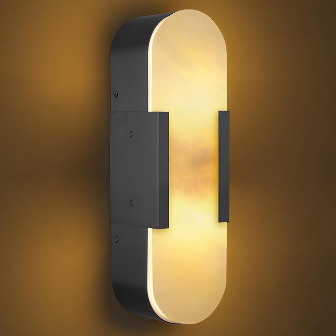 - The upgraded alabaster wall sconces won't leak ugly and harsh bulbs from the side. Black marble wall sconce wall lighting features a fully enclosed design and premium LED strip as the light source, emits 3000K soft & non-glare light, easily creating a cozy, warm atmosphere for you. Brightness is adjustable when paired with a dimmer, not included.