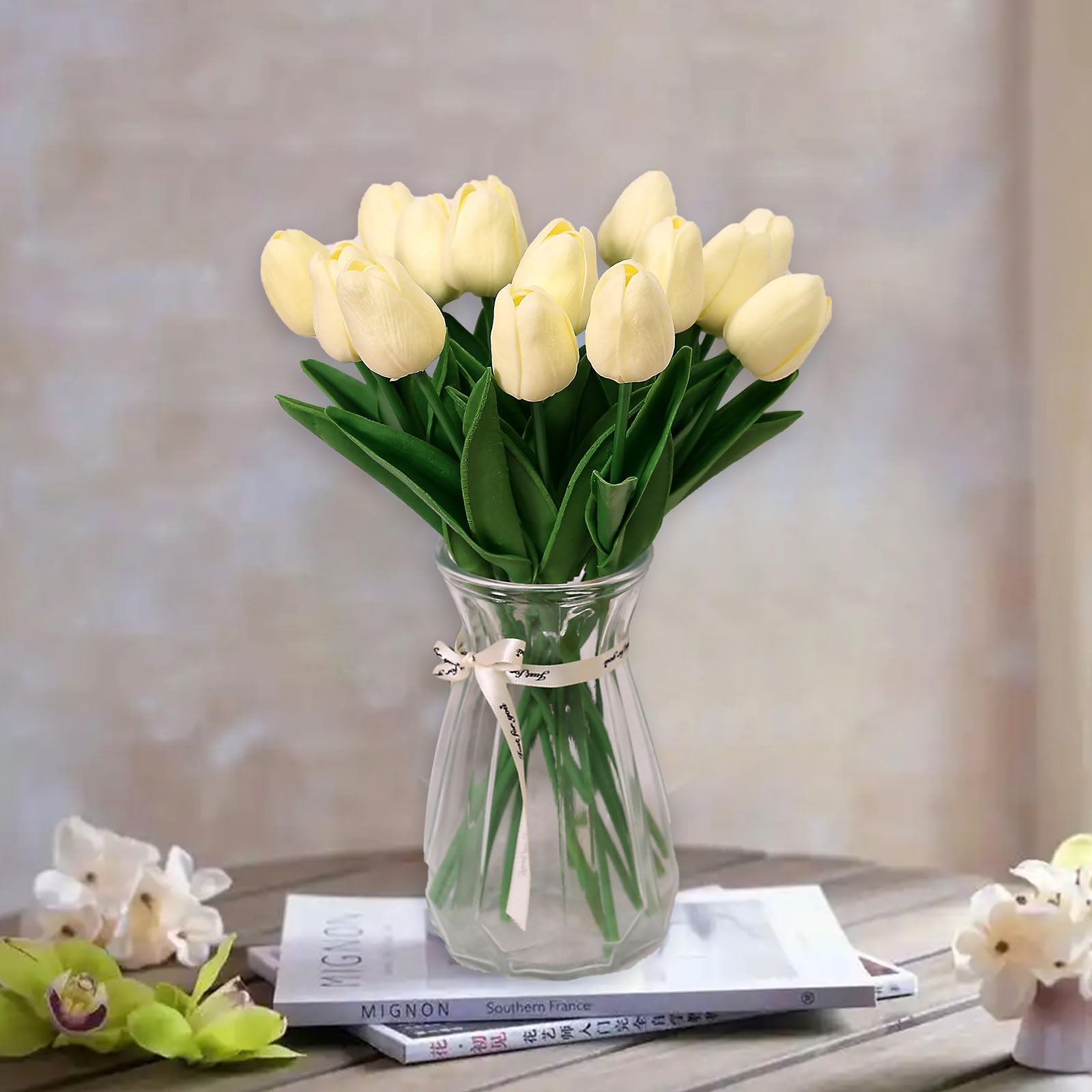 - 20PCS lifelike faux tulips with natural looking bulbs. Perfect for indoor farmhouse kitchens or outdoor patio decor. UV-Resistant, withstand all seasons