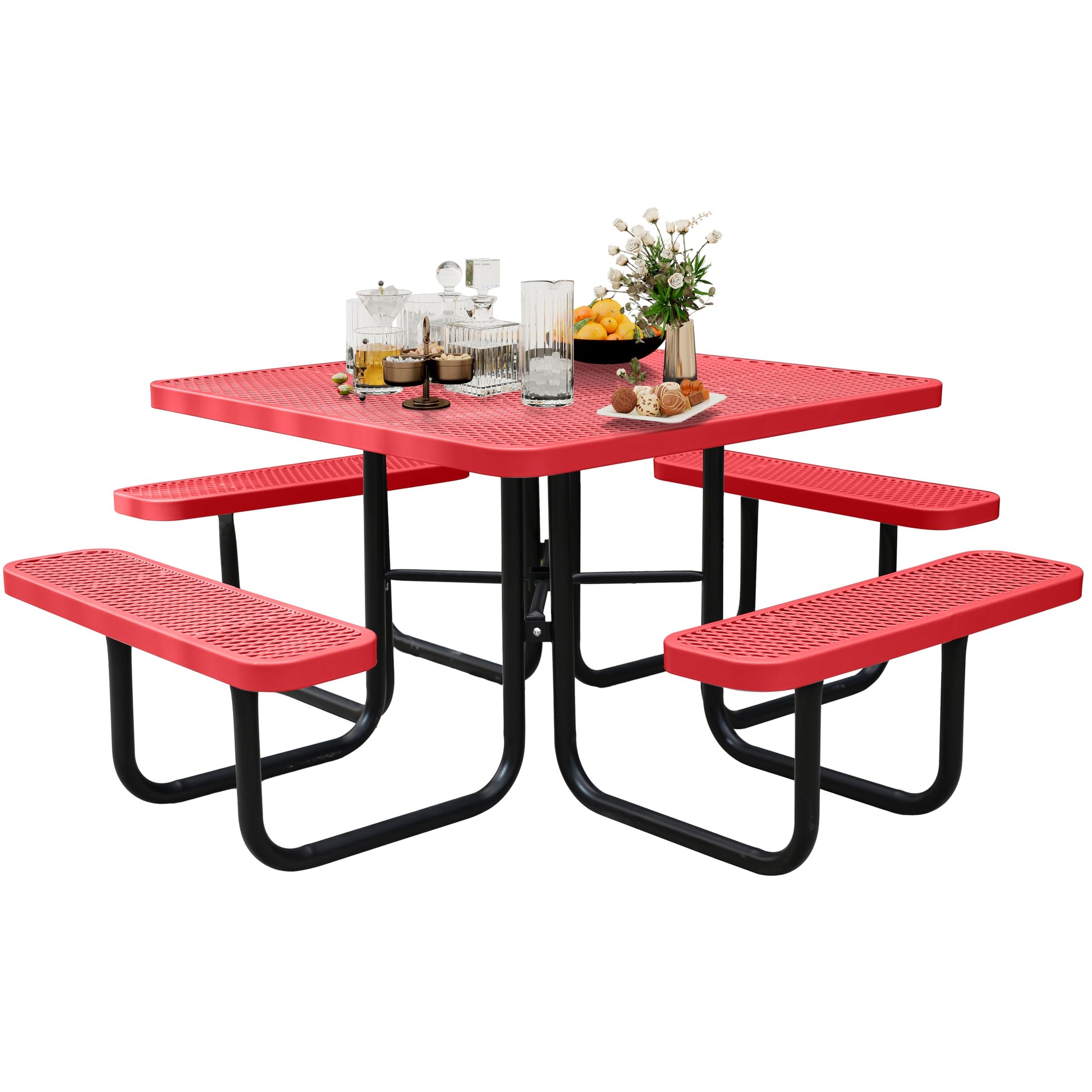 8-Person Picnic Tables for Outdoors, Industrial 46" Expanded Metal Square Picnic