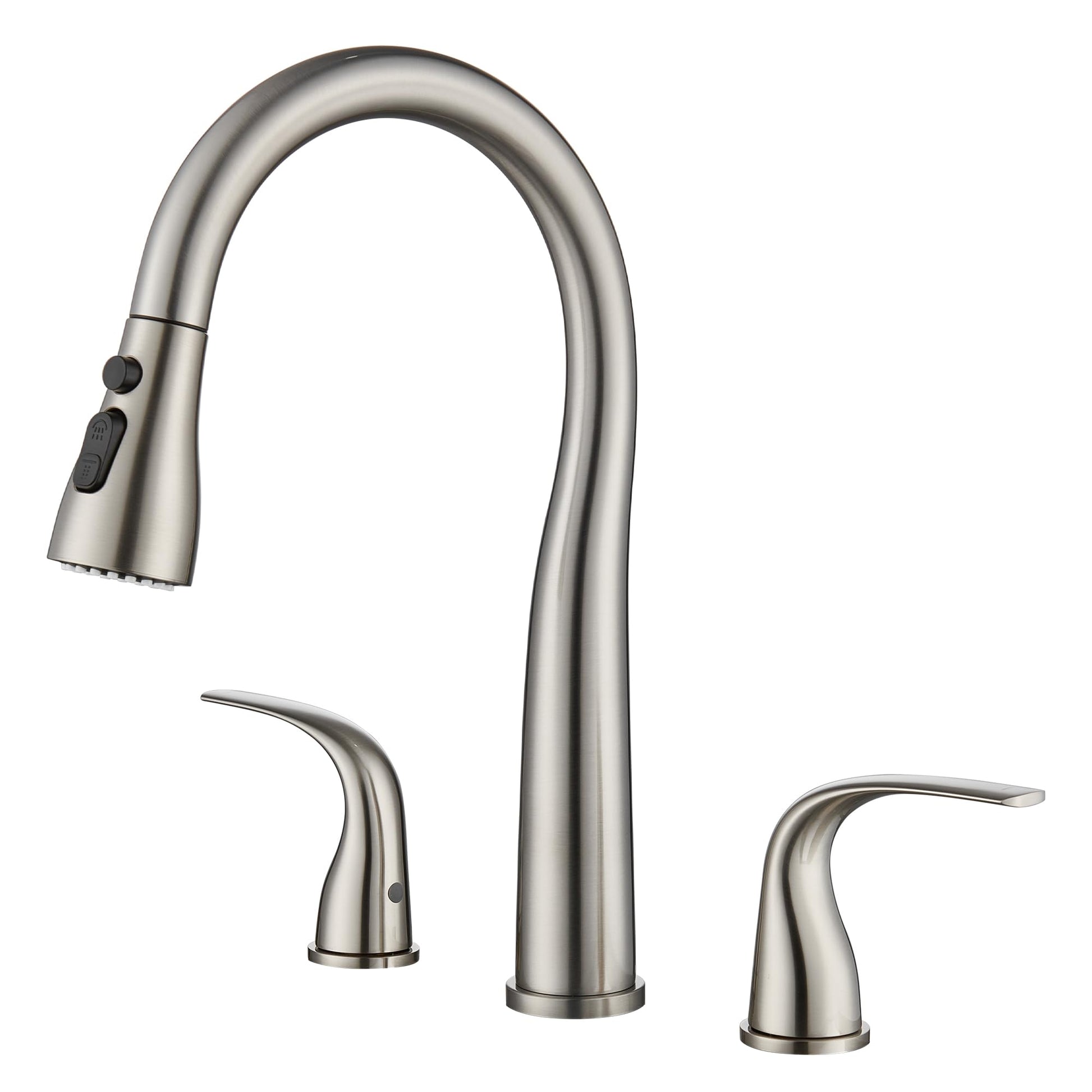 3 Hole Kitchen Faucet with Pull Down Sprayer, Brushed Nickel, Double Handle High