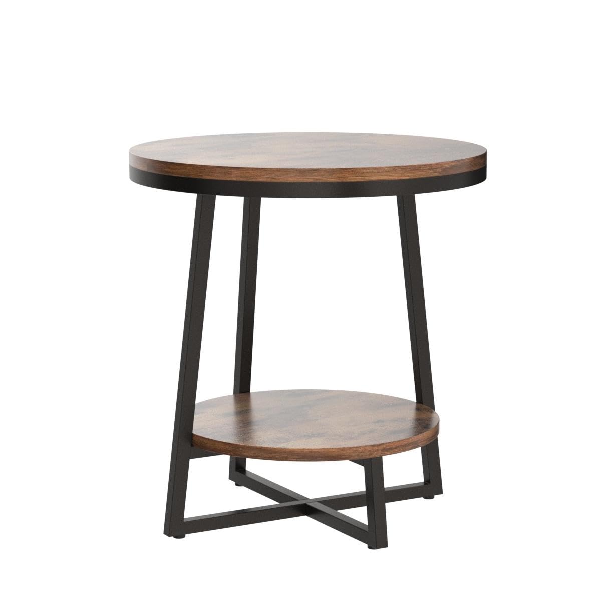 End Table, 2 Tier Round Side Table with Storage Shelf