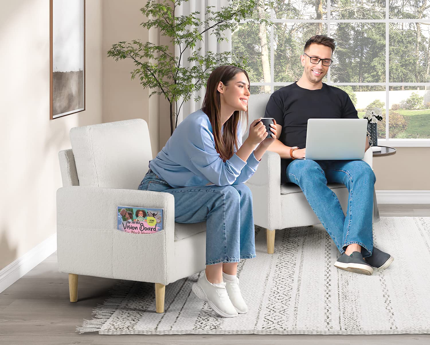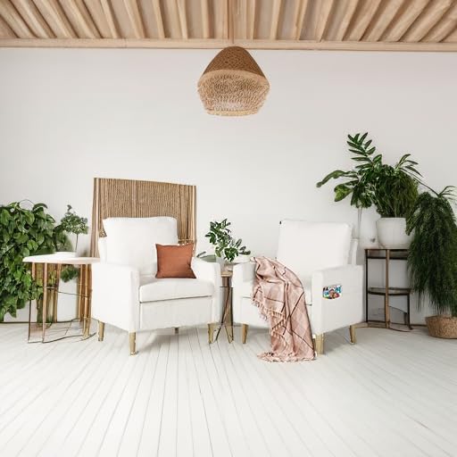 Accent Chairs Set of 2, Modern Fabric Living Room Arm Chairs