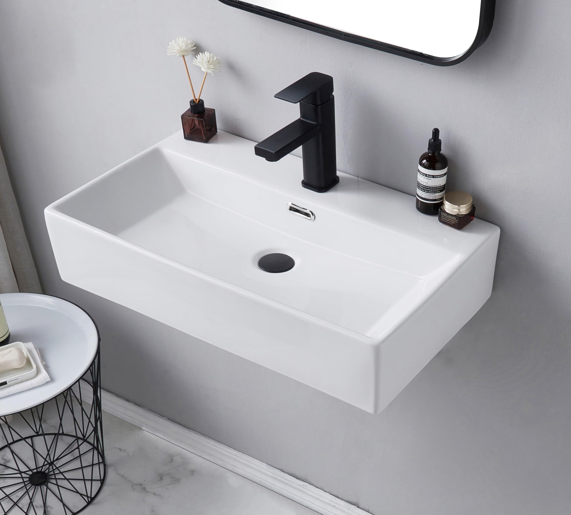 - DUAL INSTALLATION METHODS:Wall Mounted and Vessel Countertop installation.Comes with Wall Mount Screws. Wall-mounted installation type for a modern look with easy installation.(Faucet and pop up drain not included)