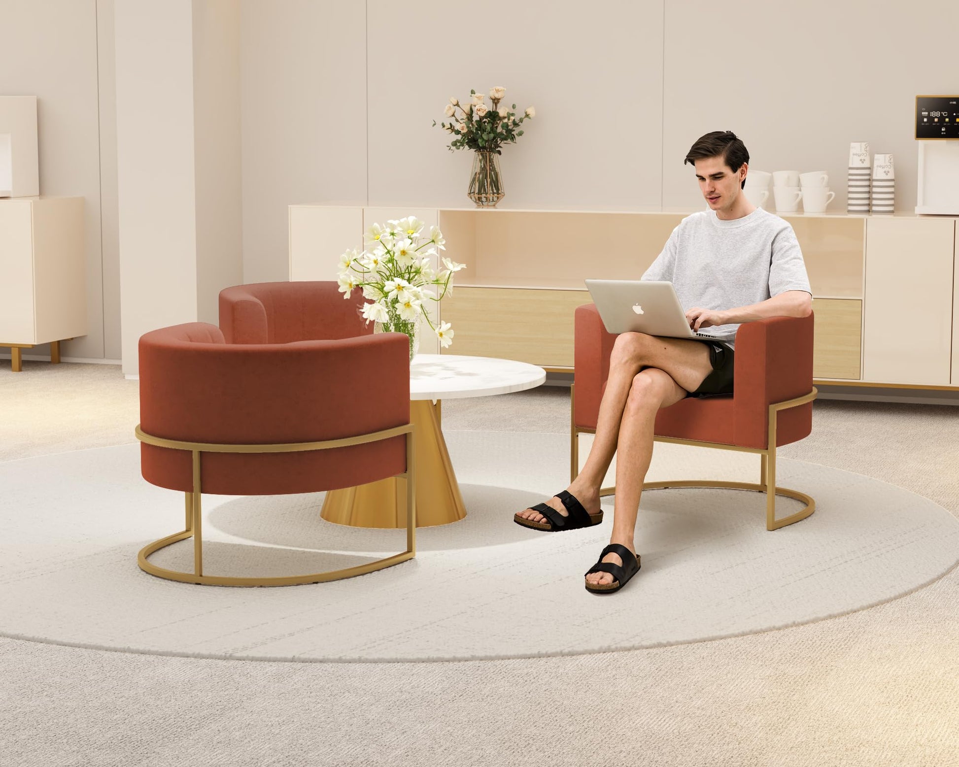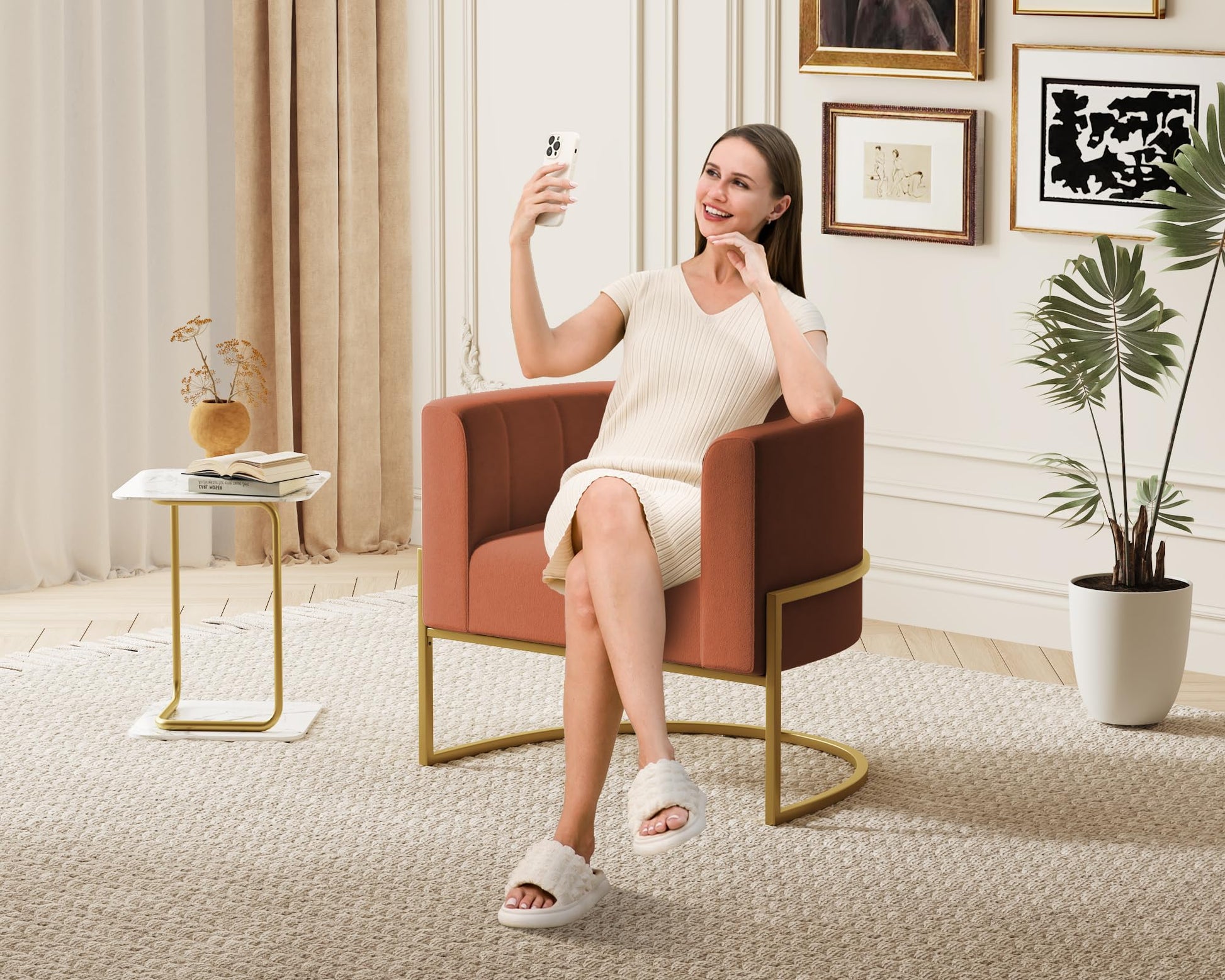 Velvet Accent Chair Burnt Orange Modern Comfy Upholstered Barrel Chair Padded Seat