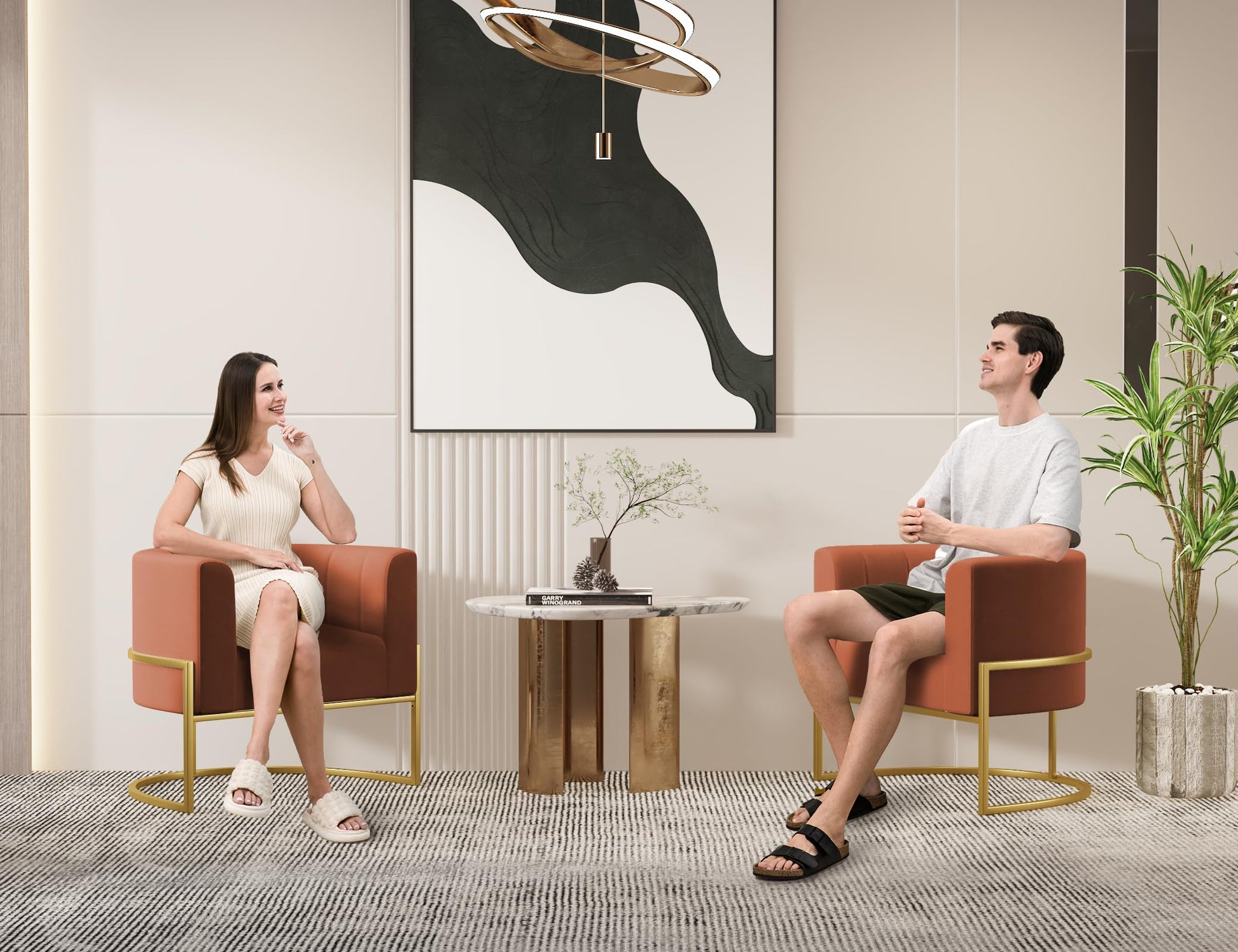 - The velvet accent chair chair boasts a golden iron frame that adds sophistication. Its sleek, modern look is ideal for both living spaces and office settings.