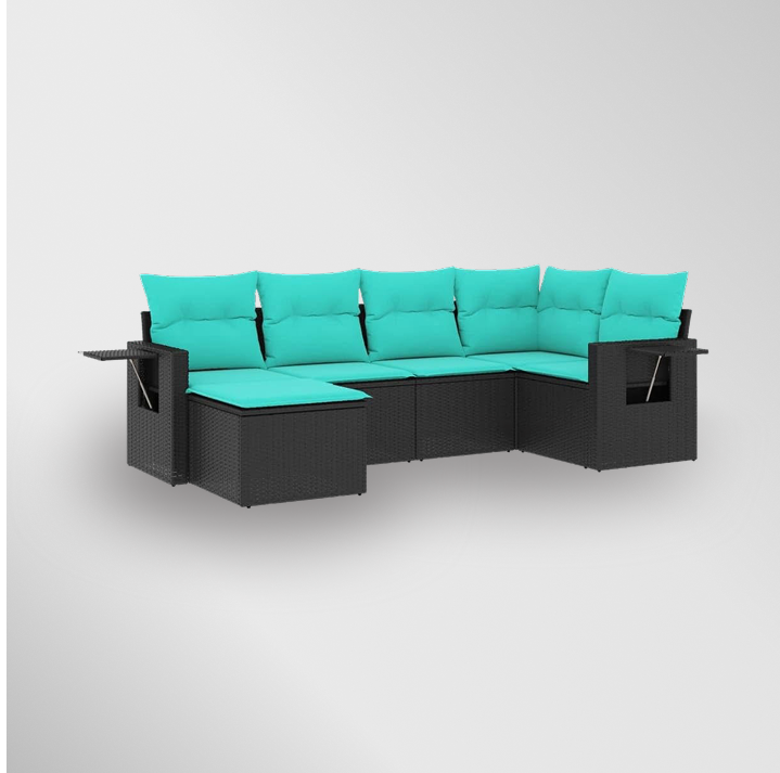 Patio Sofa Set - Outdoor Seating 6 Piece - PE Rattan Black - Cushions Included
