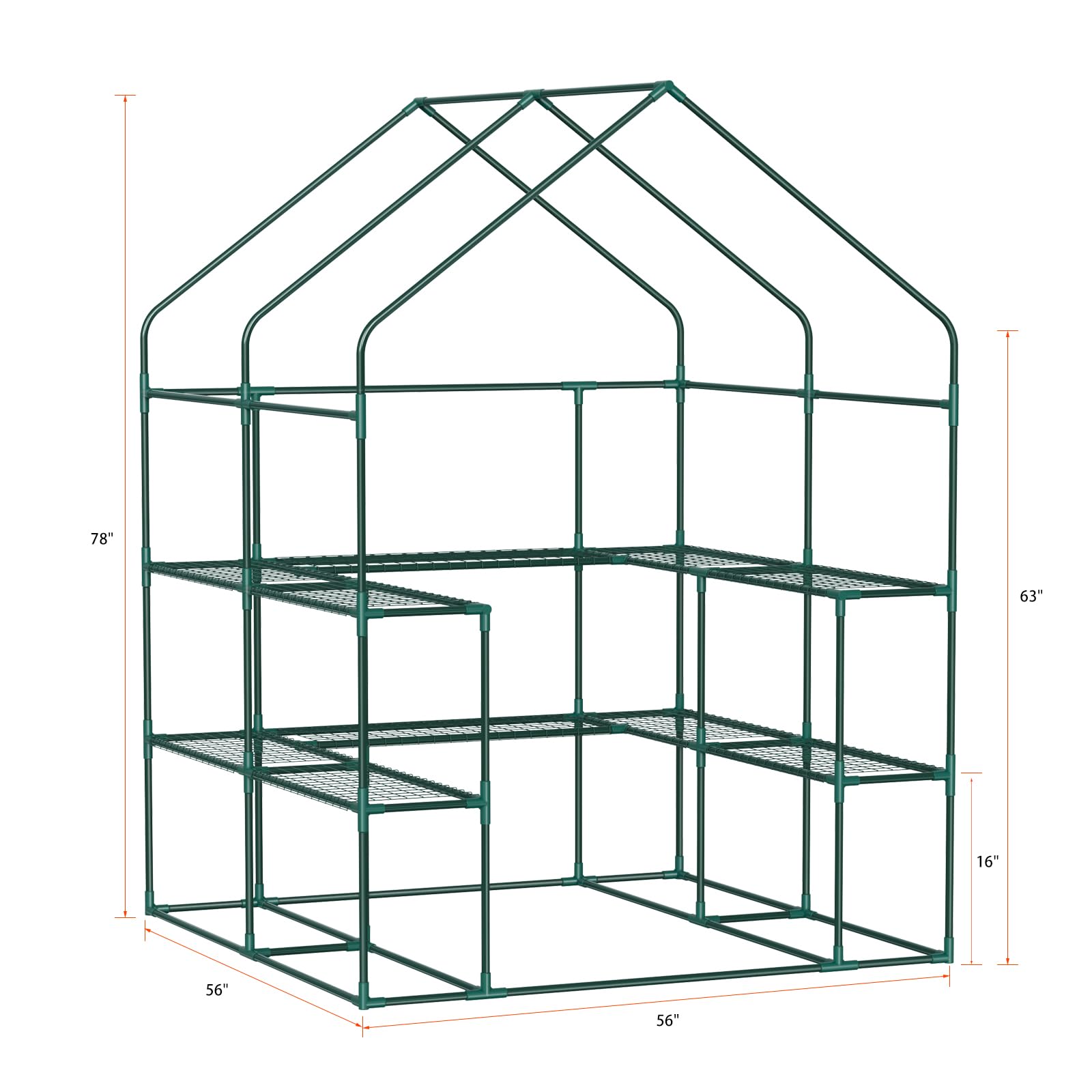 - Maximize Your Growing Space: This walk-in greenhouse features 10 sturdy shelves—4 on each side and 2 in the front—providing ample space for plants. The 32" x 56" x 78" interior allows for easy plant care and accommodates large potted plants.