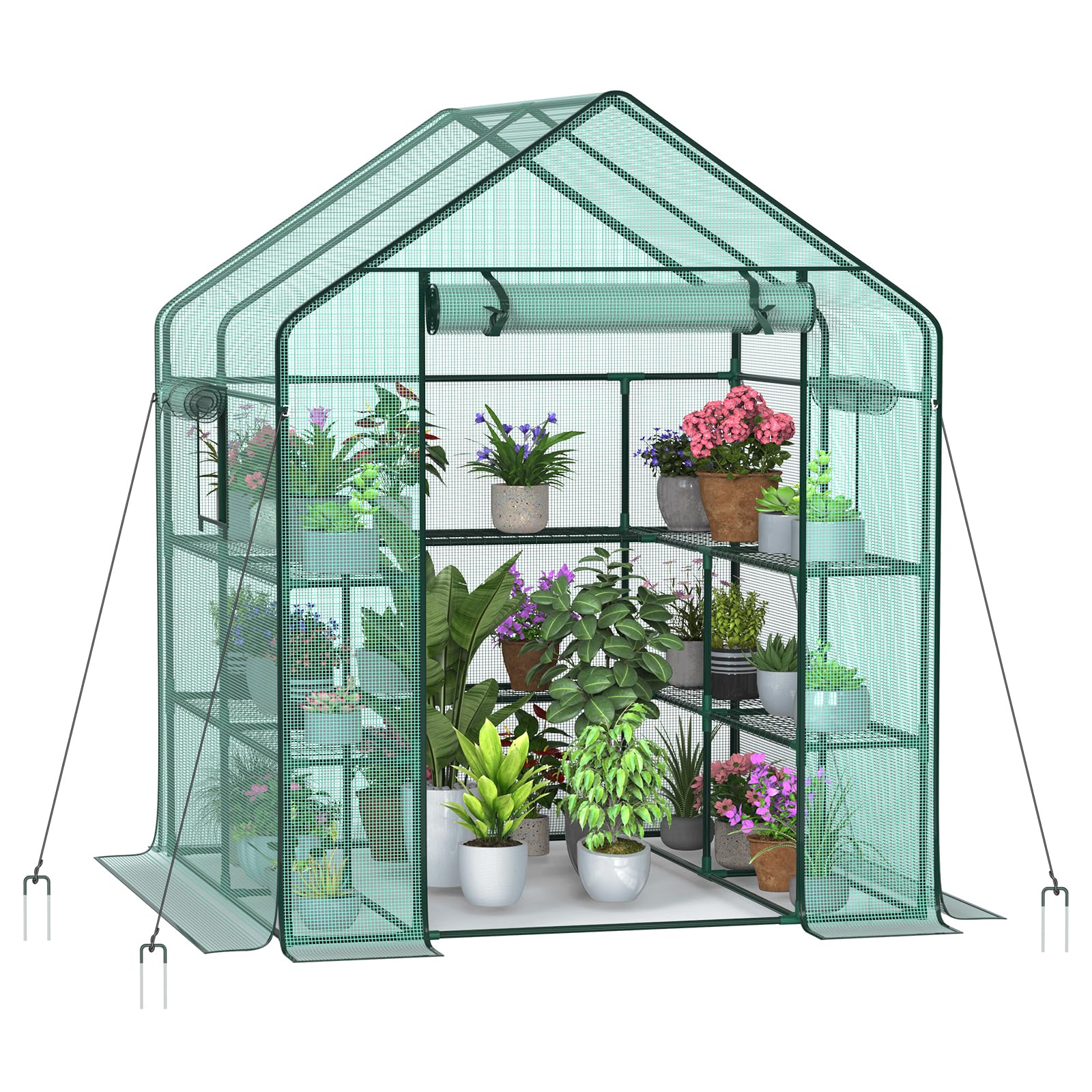 Walk-in Outdoor Greenhouse with 2 Mesh Windows, 4 Tiers, and 10 Shelves