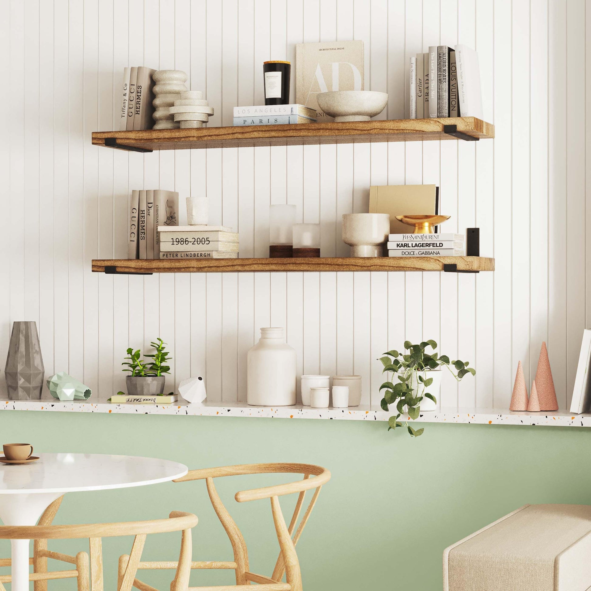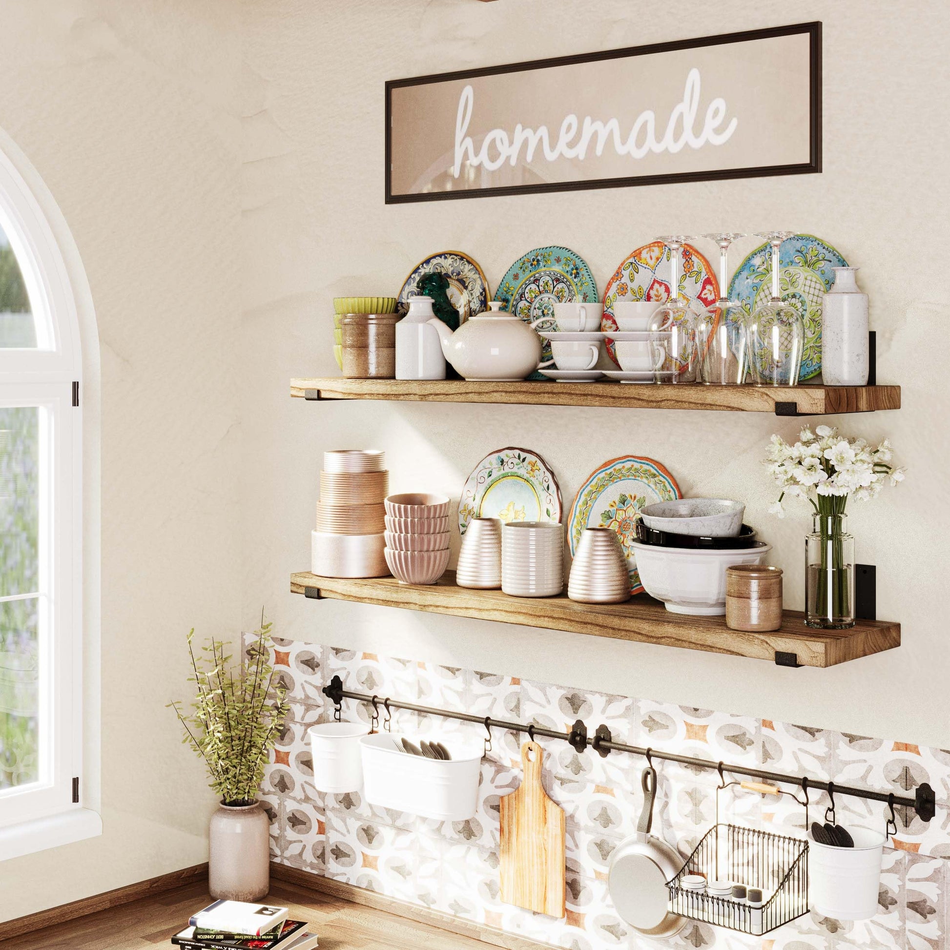 - Real Wood Durability: These floating shelves for wall decor are made from solid wood, designed to hold heavier items like books or kitchen supplies. Perfect for those needing strong, durable shelves.