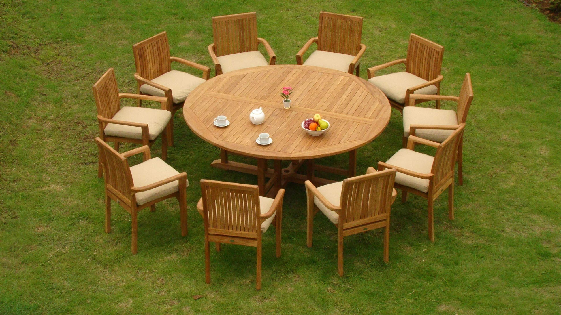 10 Seats 11 Pcs Grade-A Teak Wood Dining Set: 72" Round Table