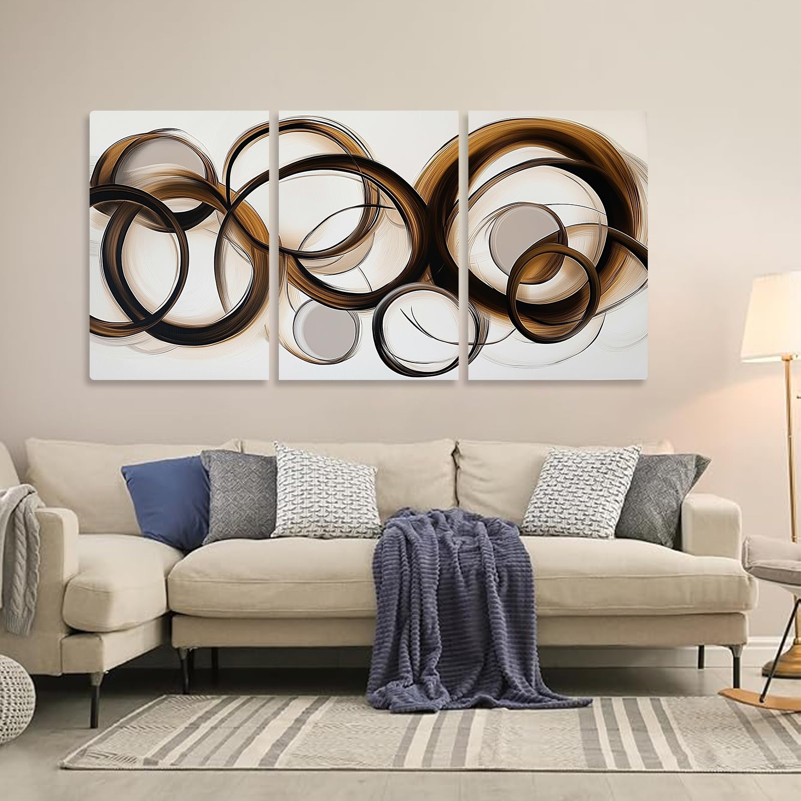 - Black and Brown Wall Decor: Three sets of abstract brown and black circles canvas wall decoration, with its simple geometric patterns and contrasting colors, give your space a modern art of movement and depth