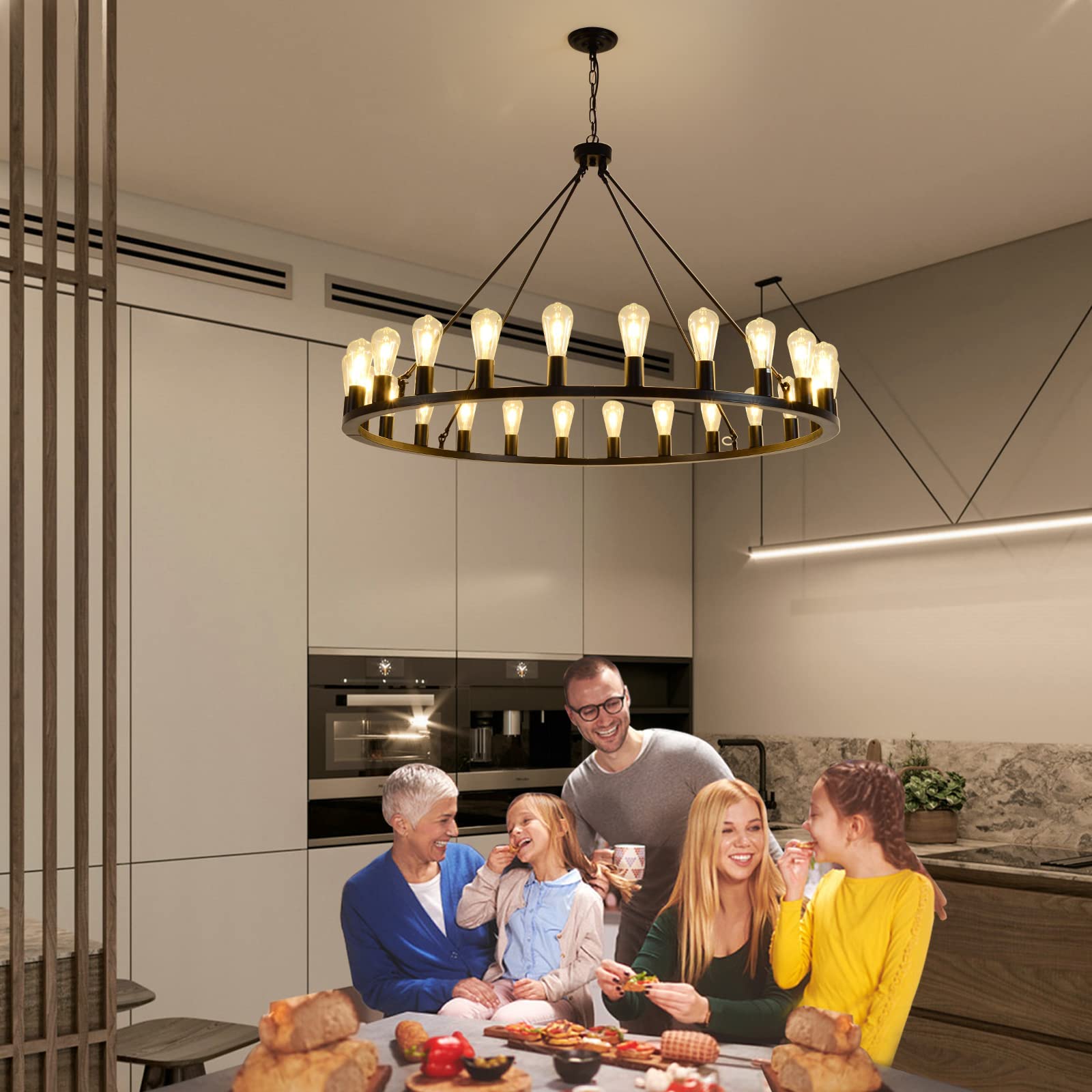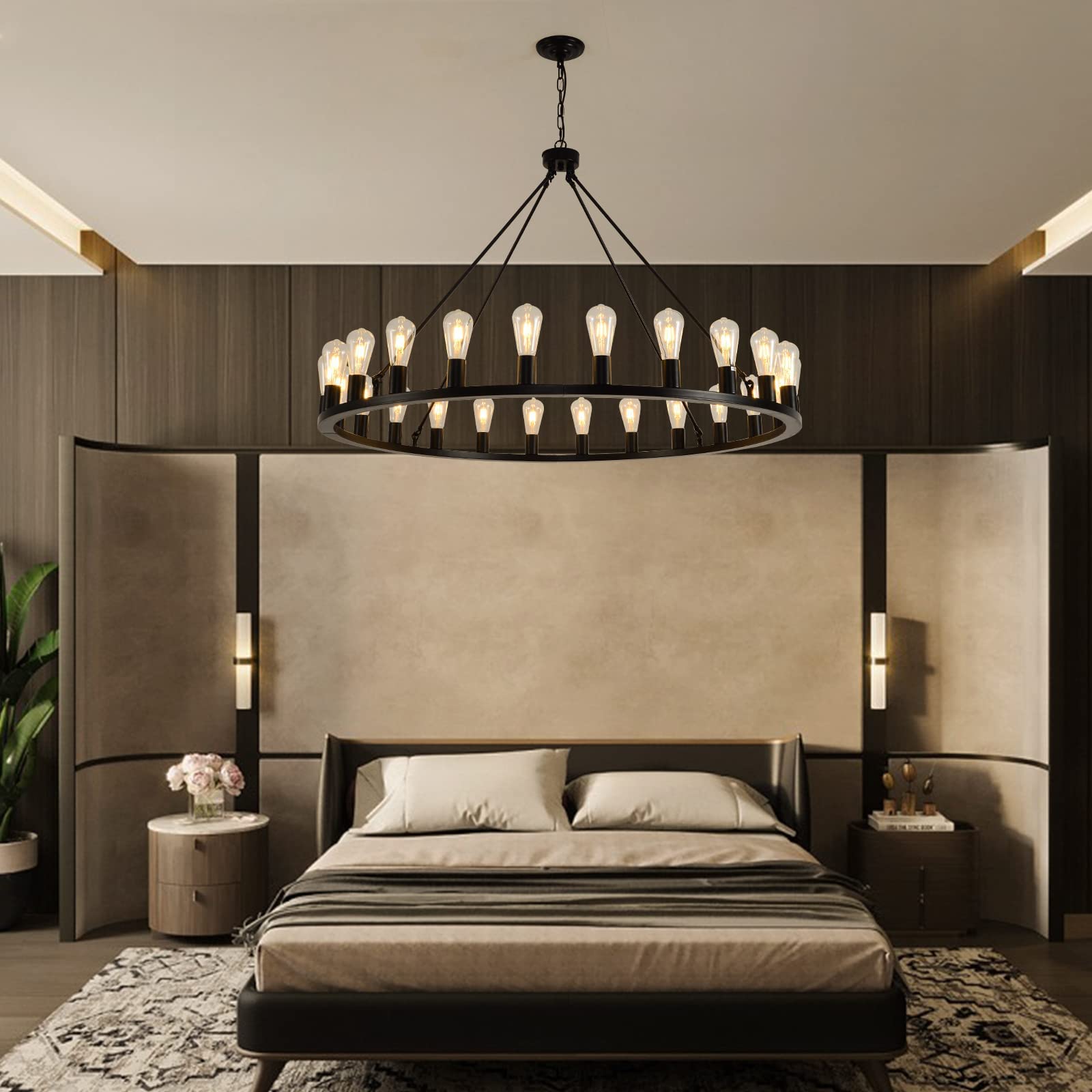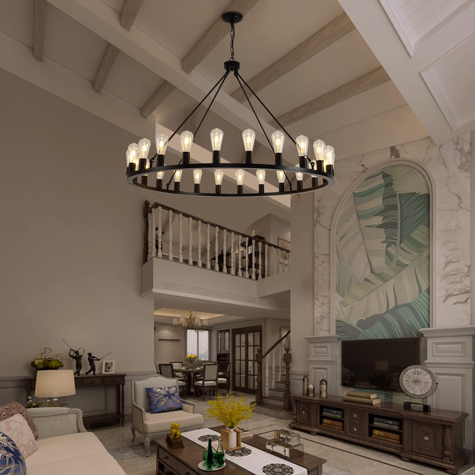 - The 24-light design provides 360°light coverage, creates a cozy home atmosphere, perfect for dining areas or front door entryways. Larger and brighter than standard wheel chandeliers.