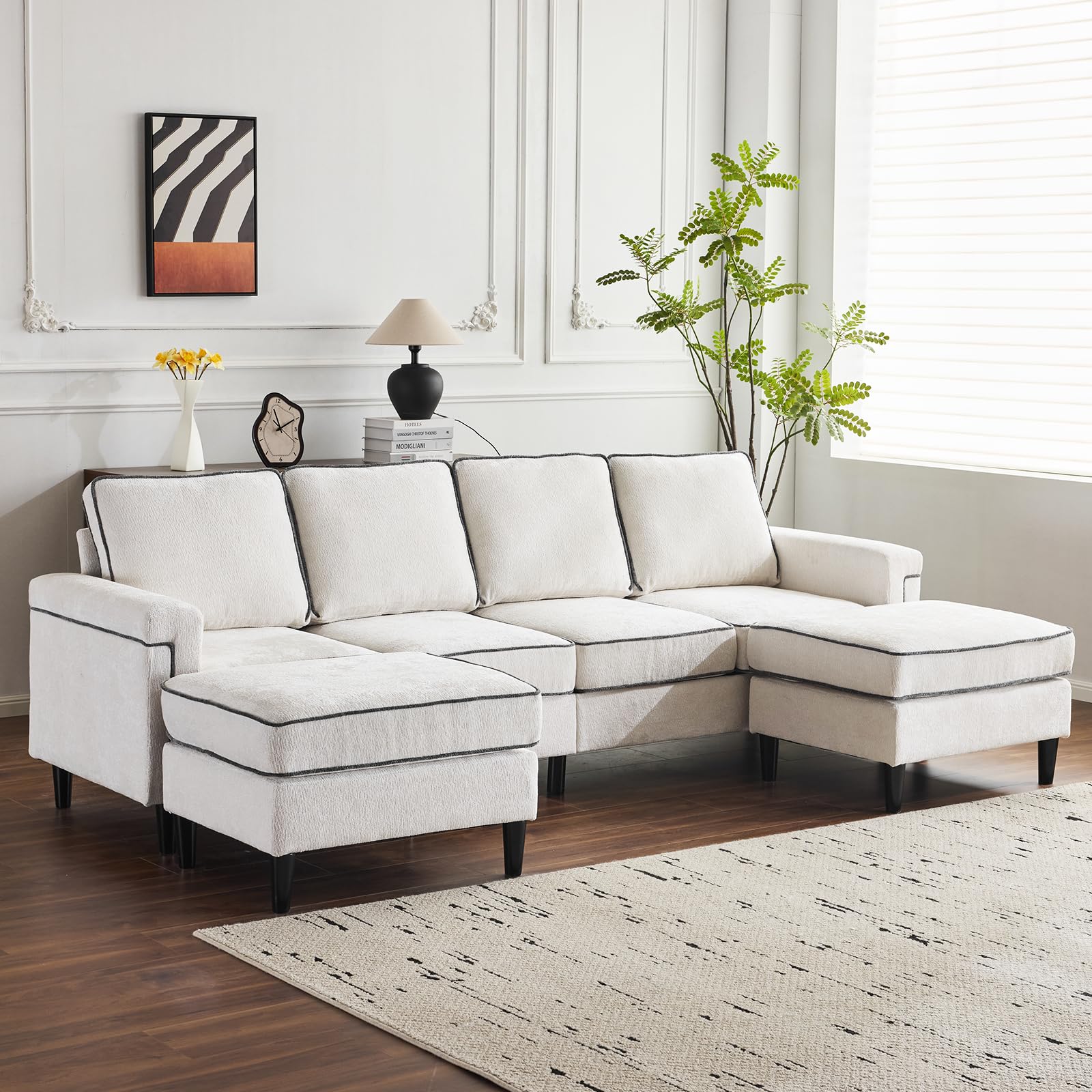 - Spacious U-Shaped Design with Ottomans – Featuring a versatile U-shaped layout with two matching ottomans, this couch offers ample seating and multiple lounging options for ultimate comfort.